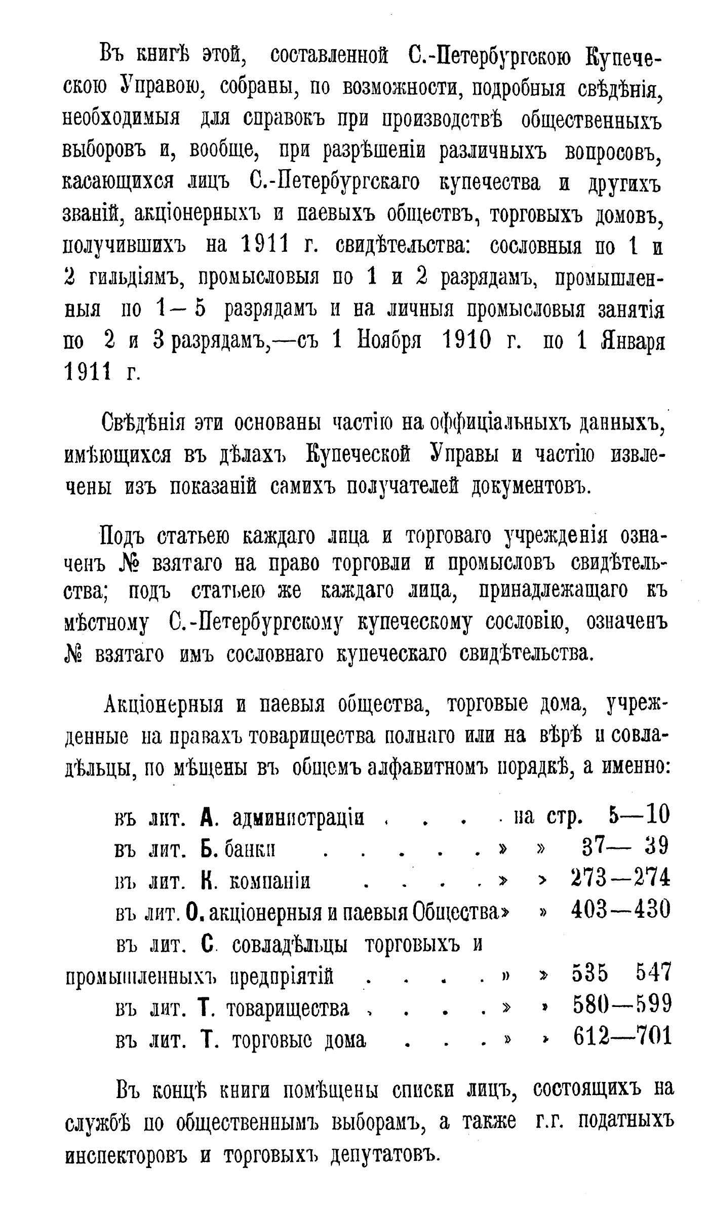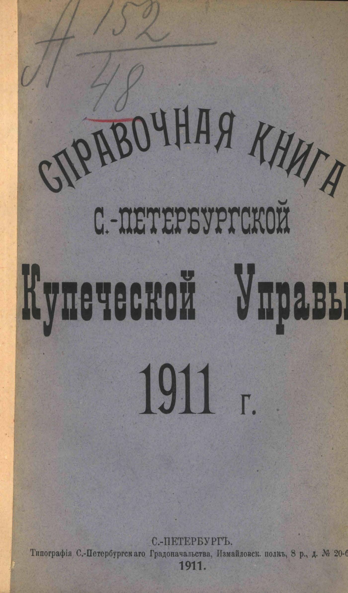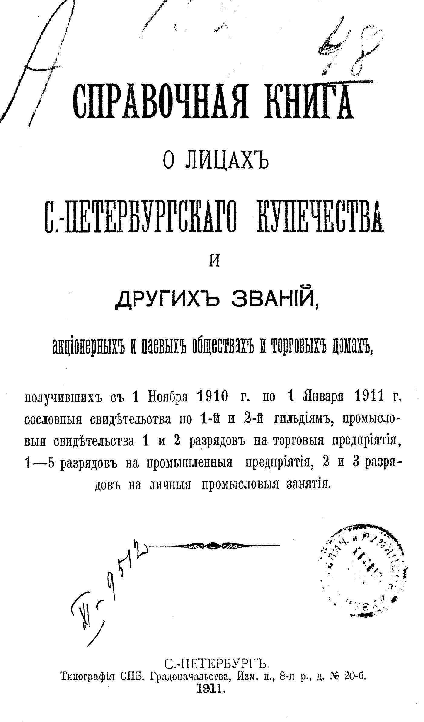 Справочная книга о купцах С.-Петербурга на 1911 год Петербургская купеческая управа