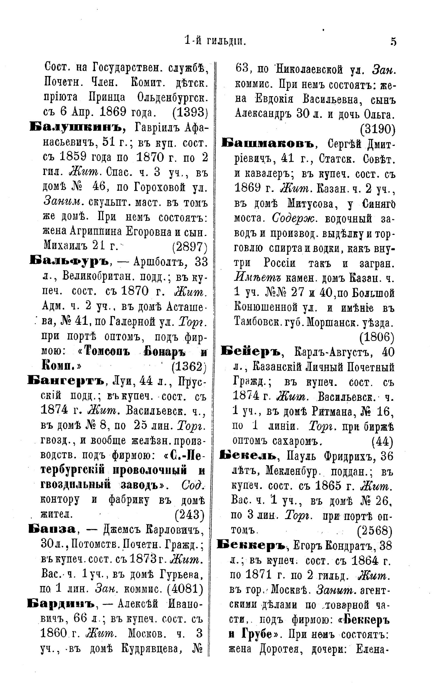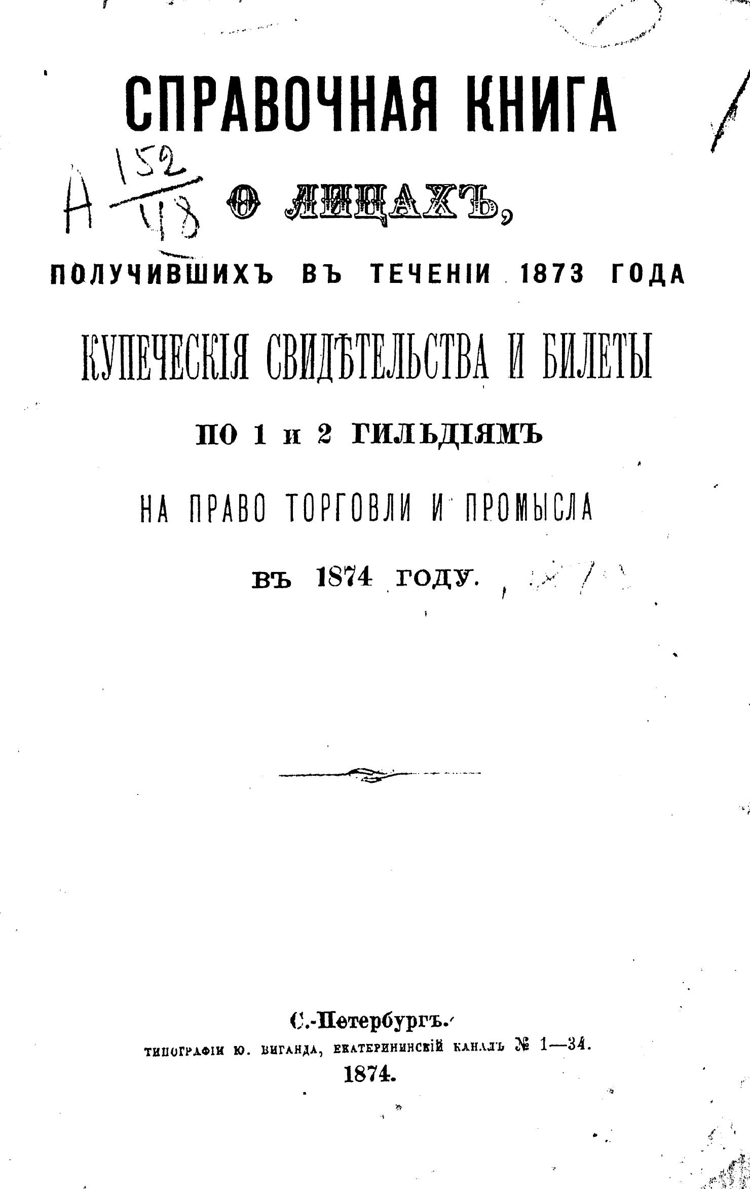 Справочная книга о купцах С.-Петербурга на 1874 год Петербургская купеческая управа