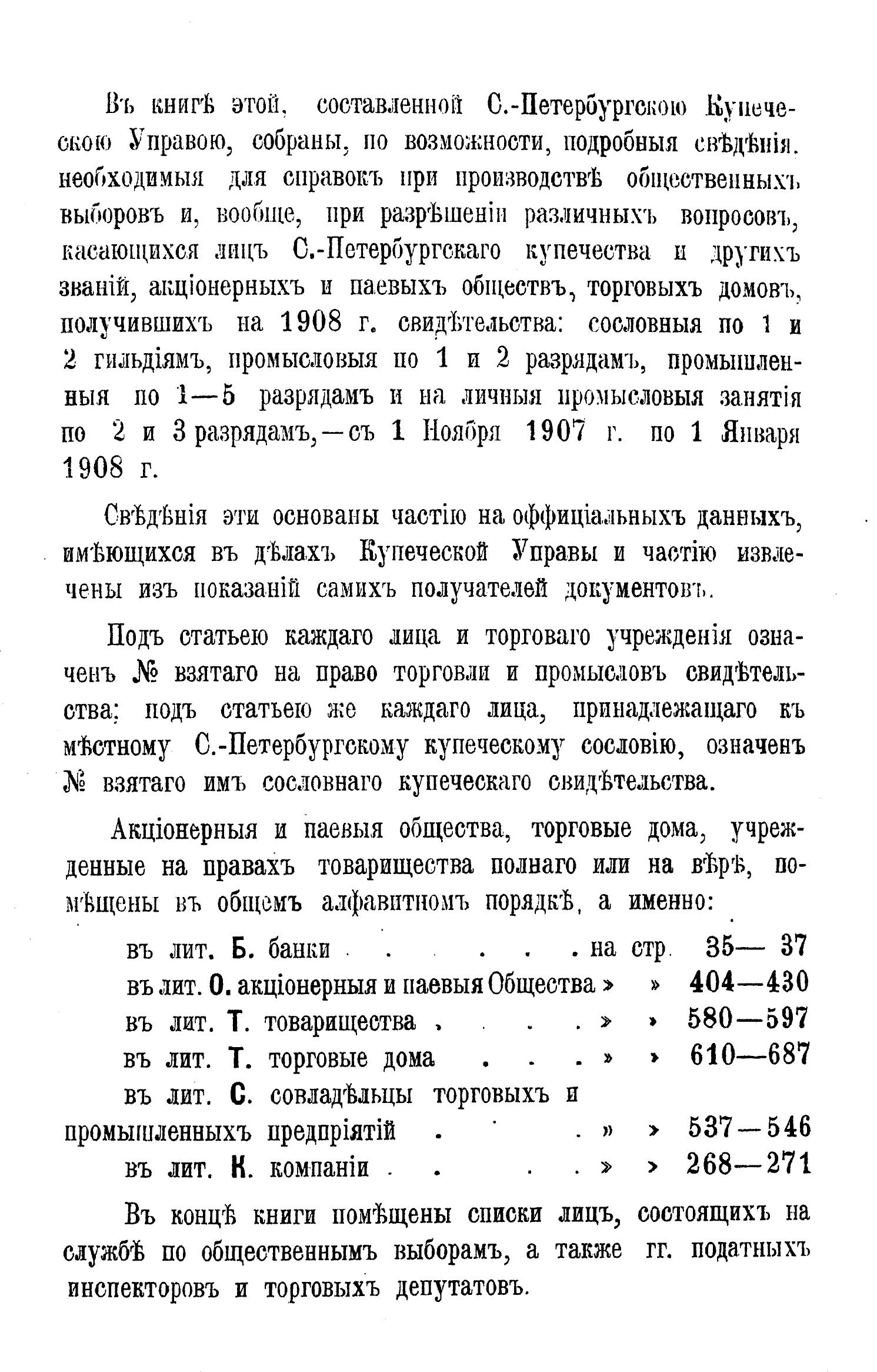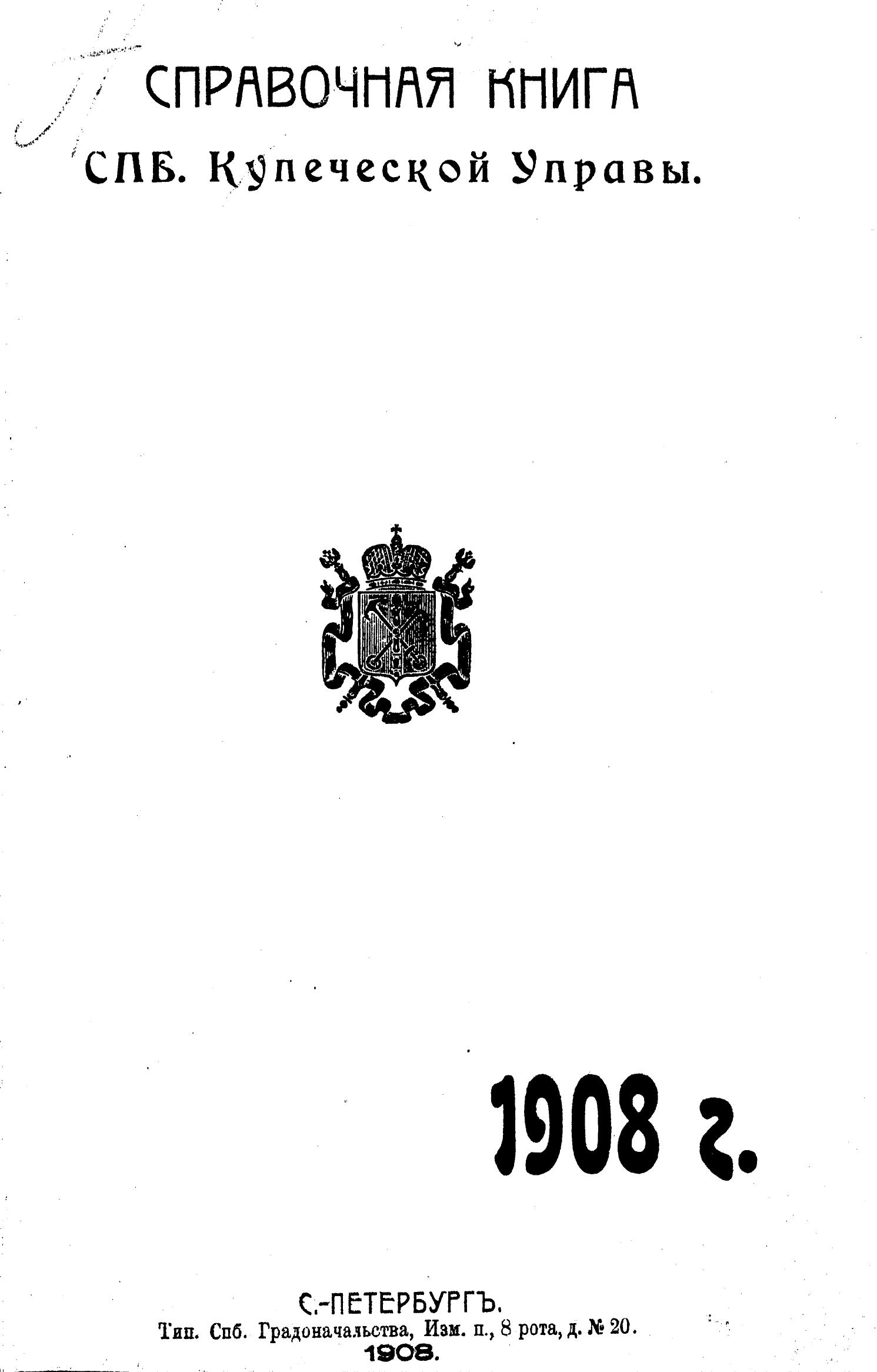 Справочная книга о купцах С.-Петербурга на 1908 год Петербургская купеческая управа