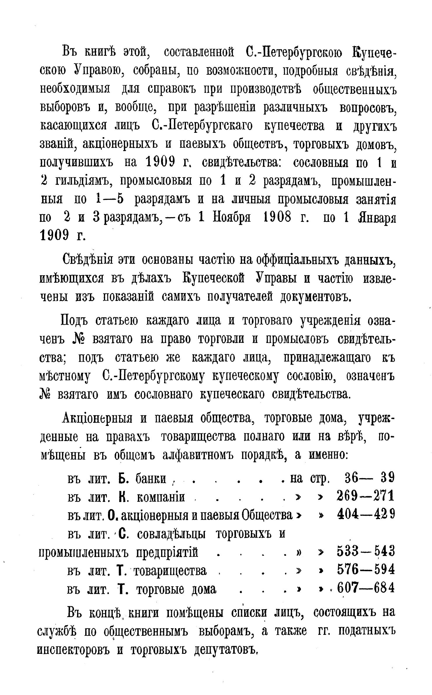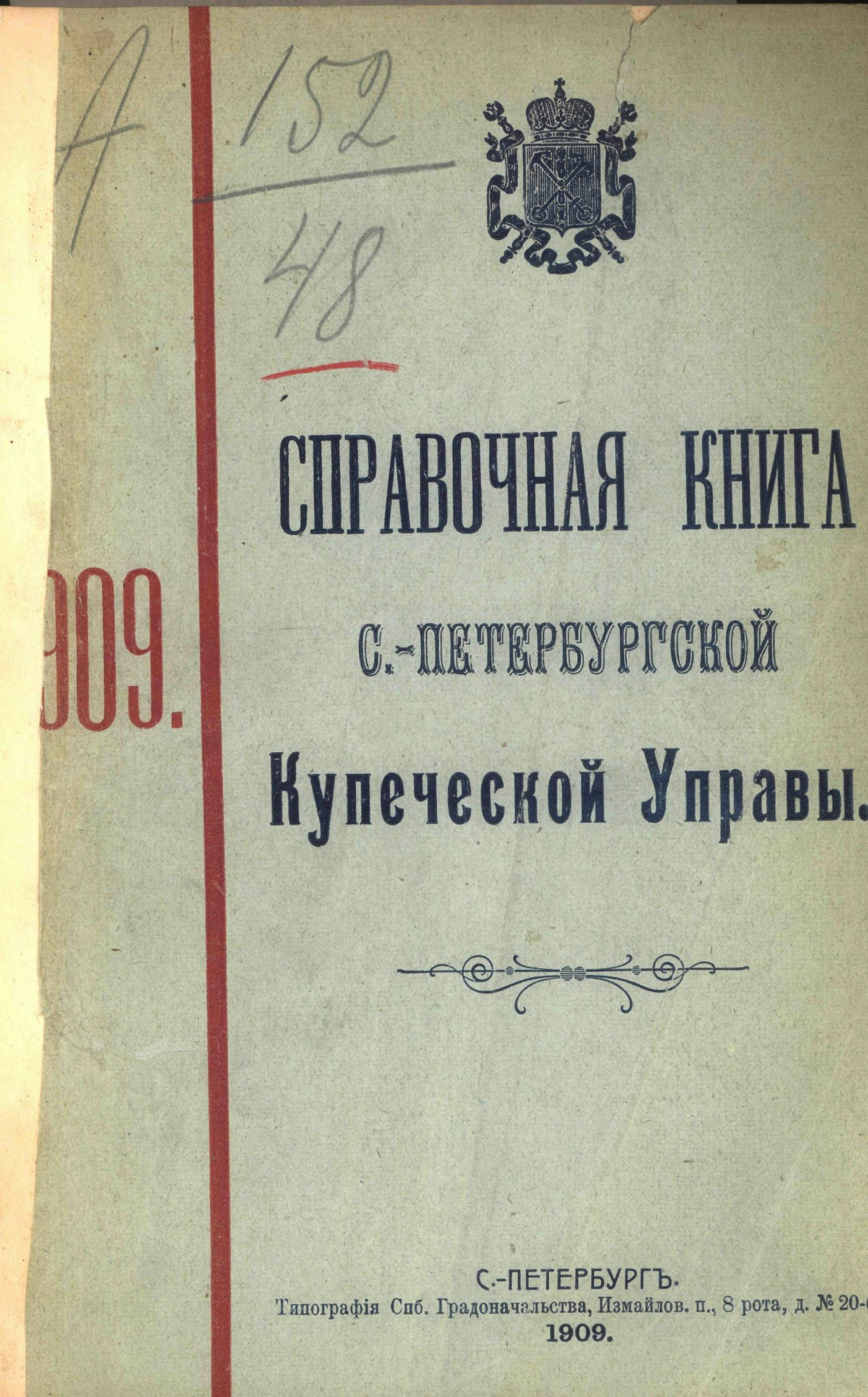 Справочная книга о купцах С.-Петербурга на 1909 год Петербургская купеческая управа