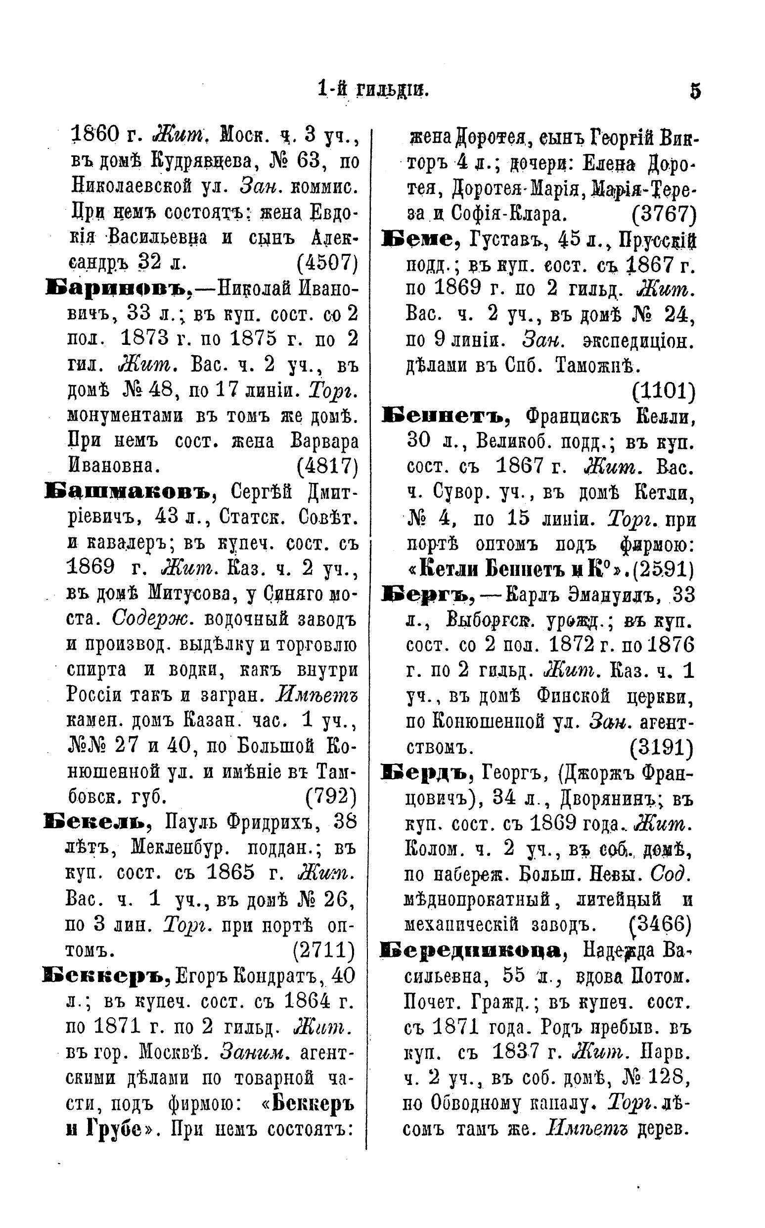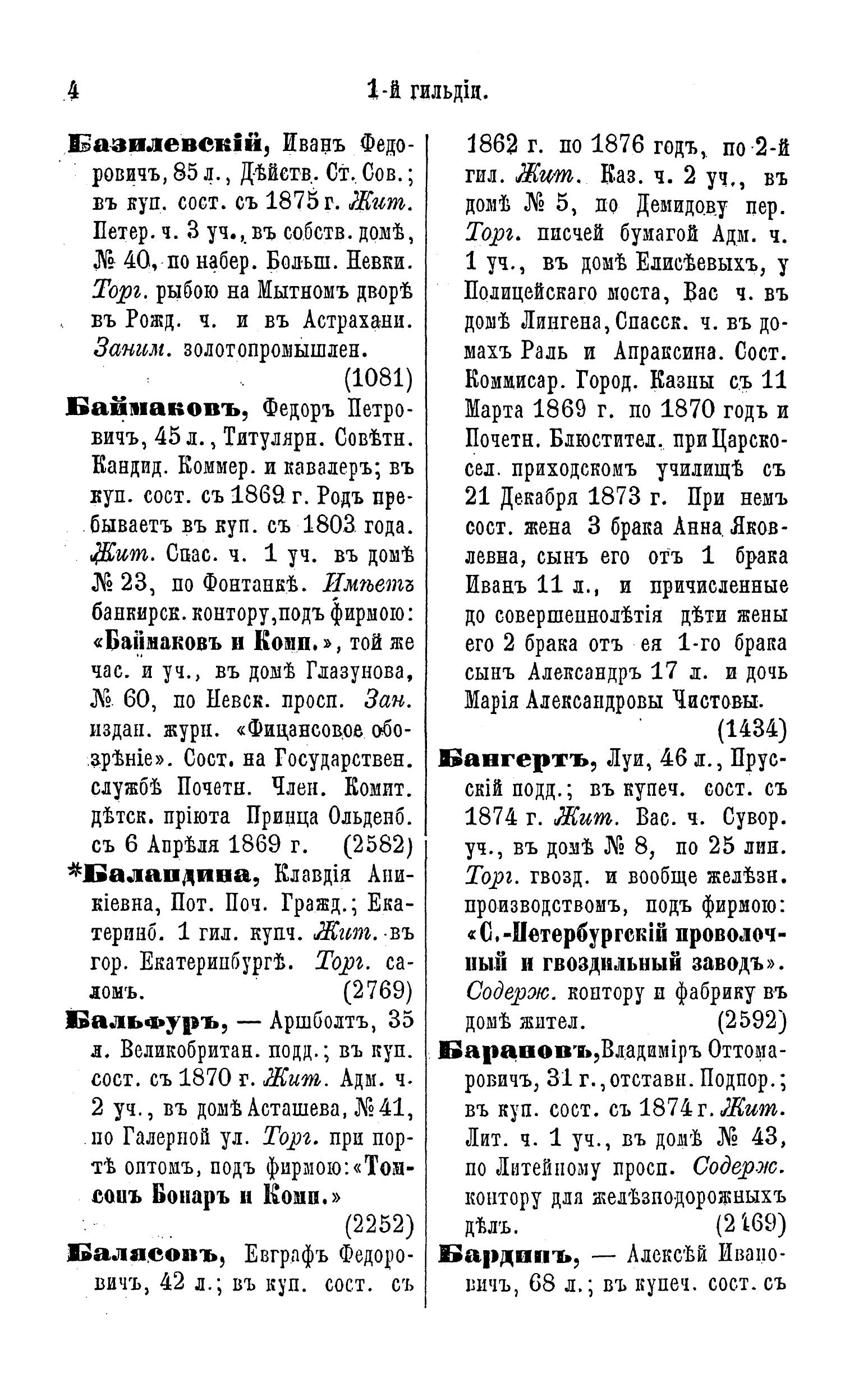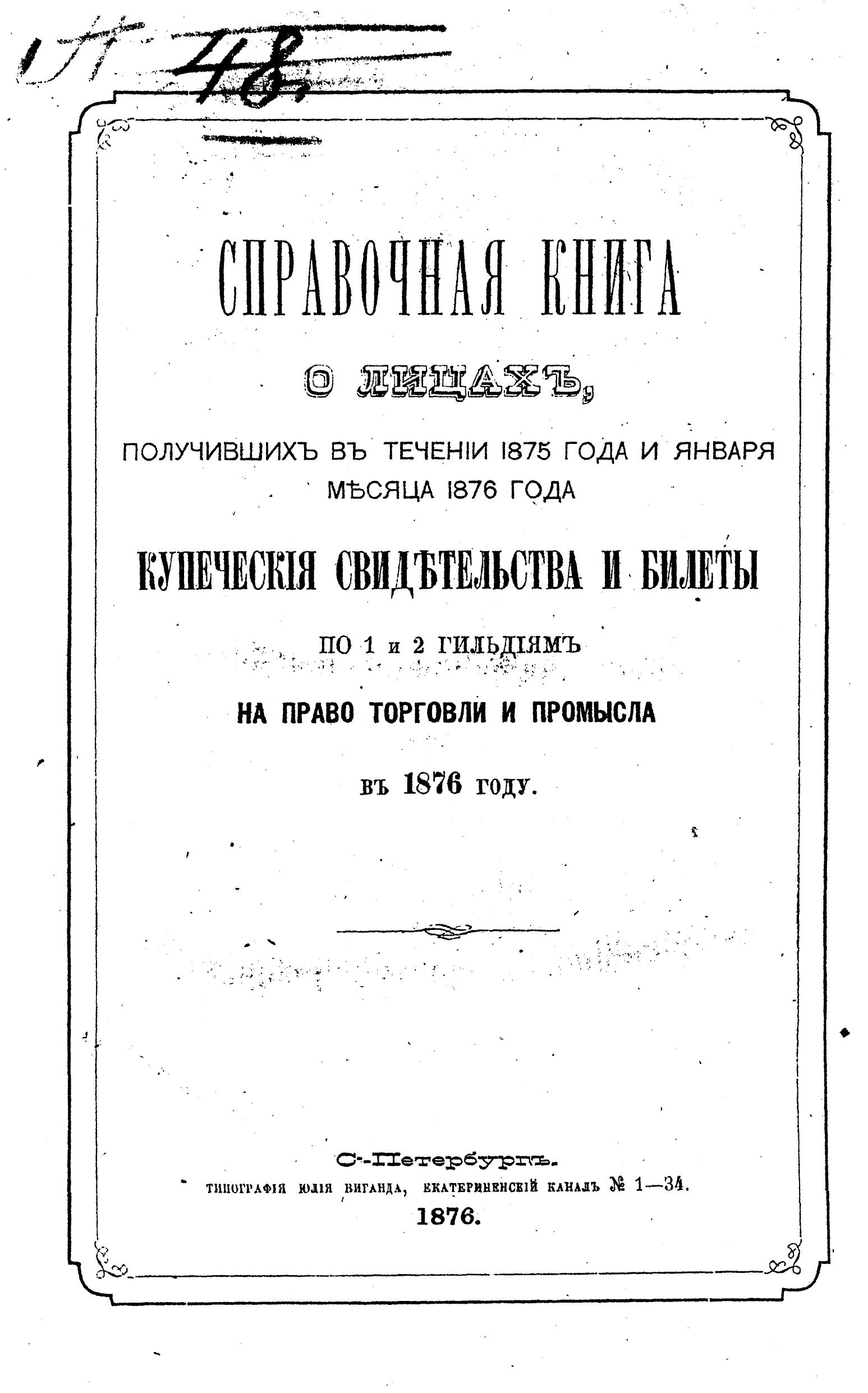 Справочная книга о купцах С.-Петербурга на 1876 год Петербургская купеческая управа