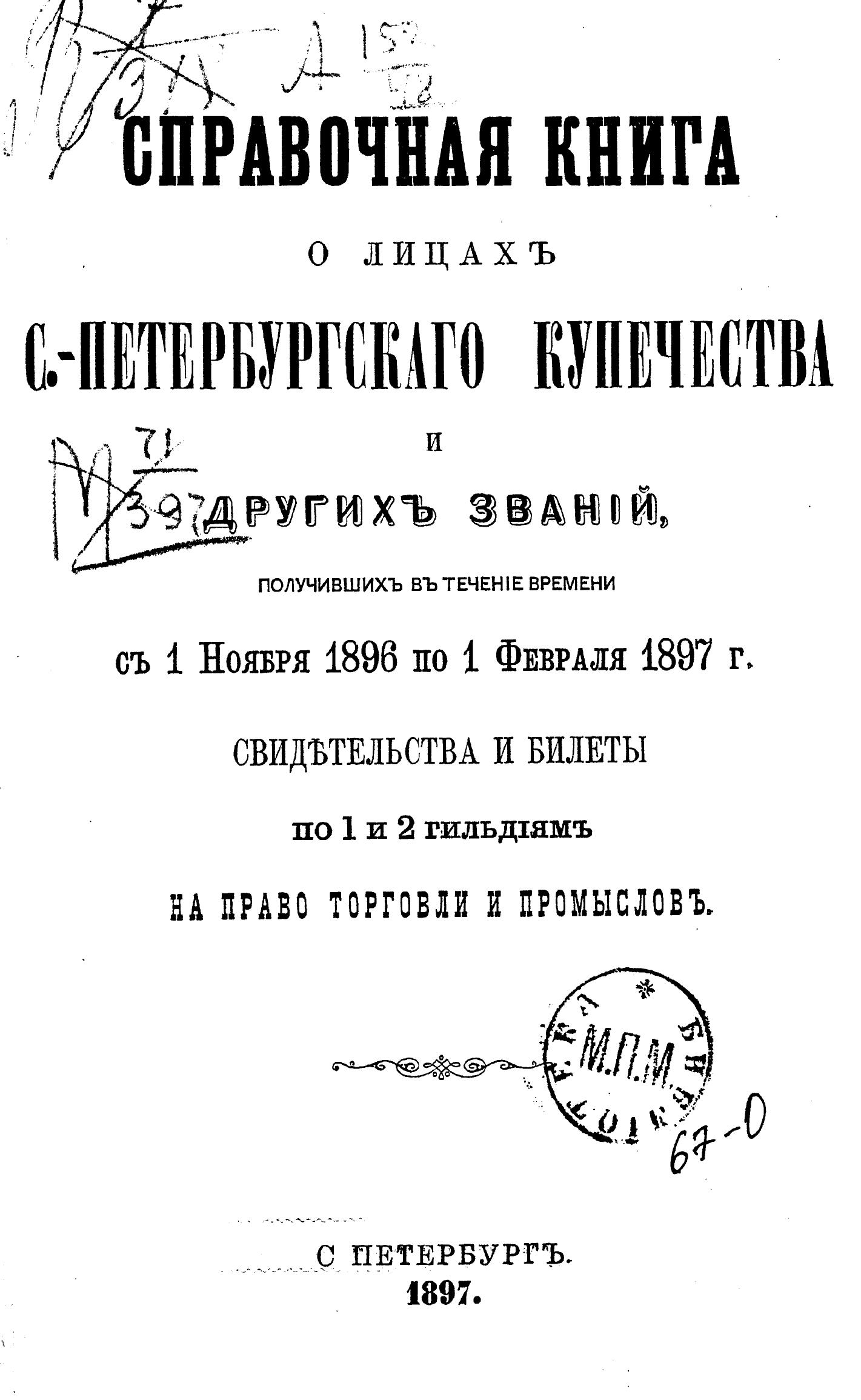 Справочная книга о купцах С.-Петербурга на 1897 год Петербургская купеческая управа