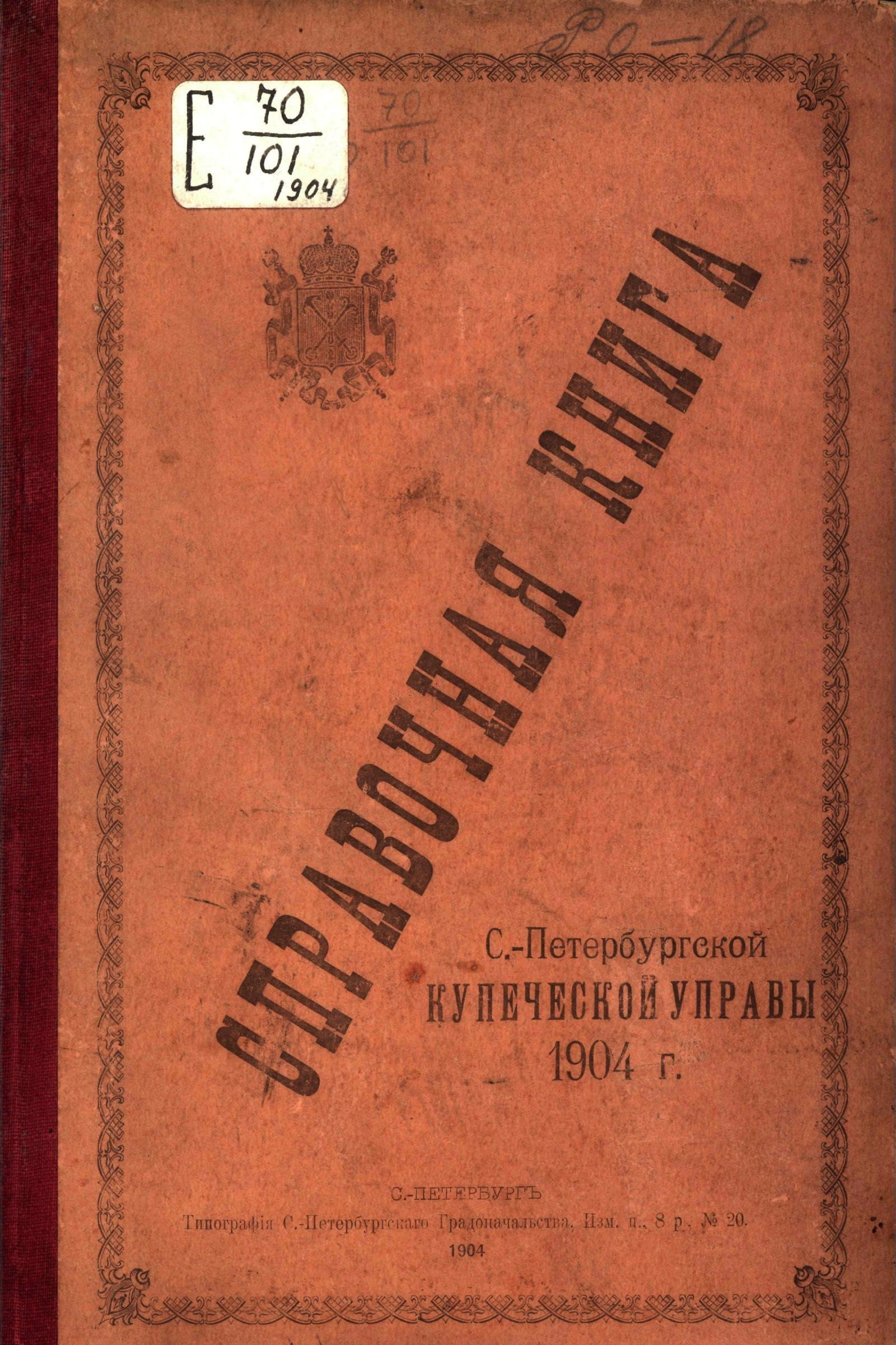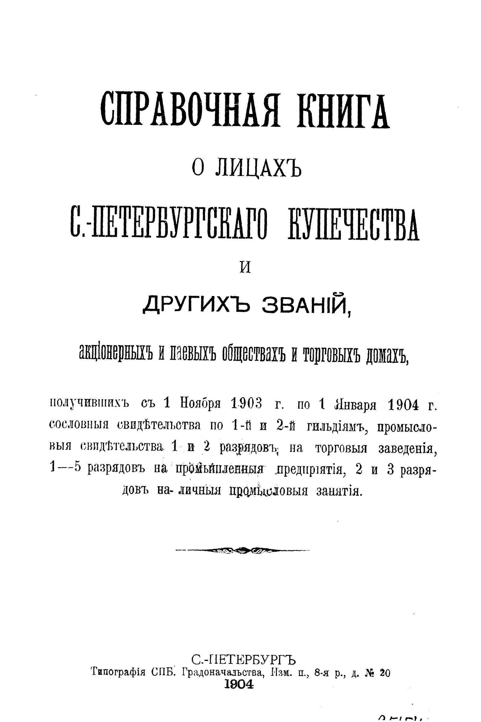 Справочная книга о купцах С.-Петербурга на 1904 год Петербургская купеческая управа