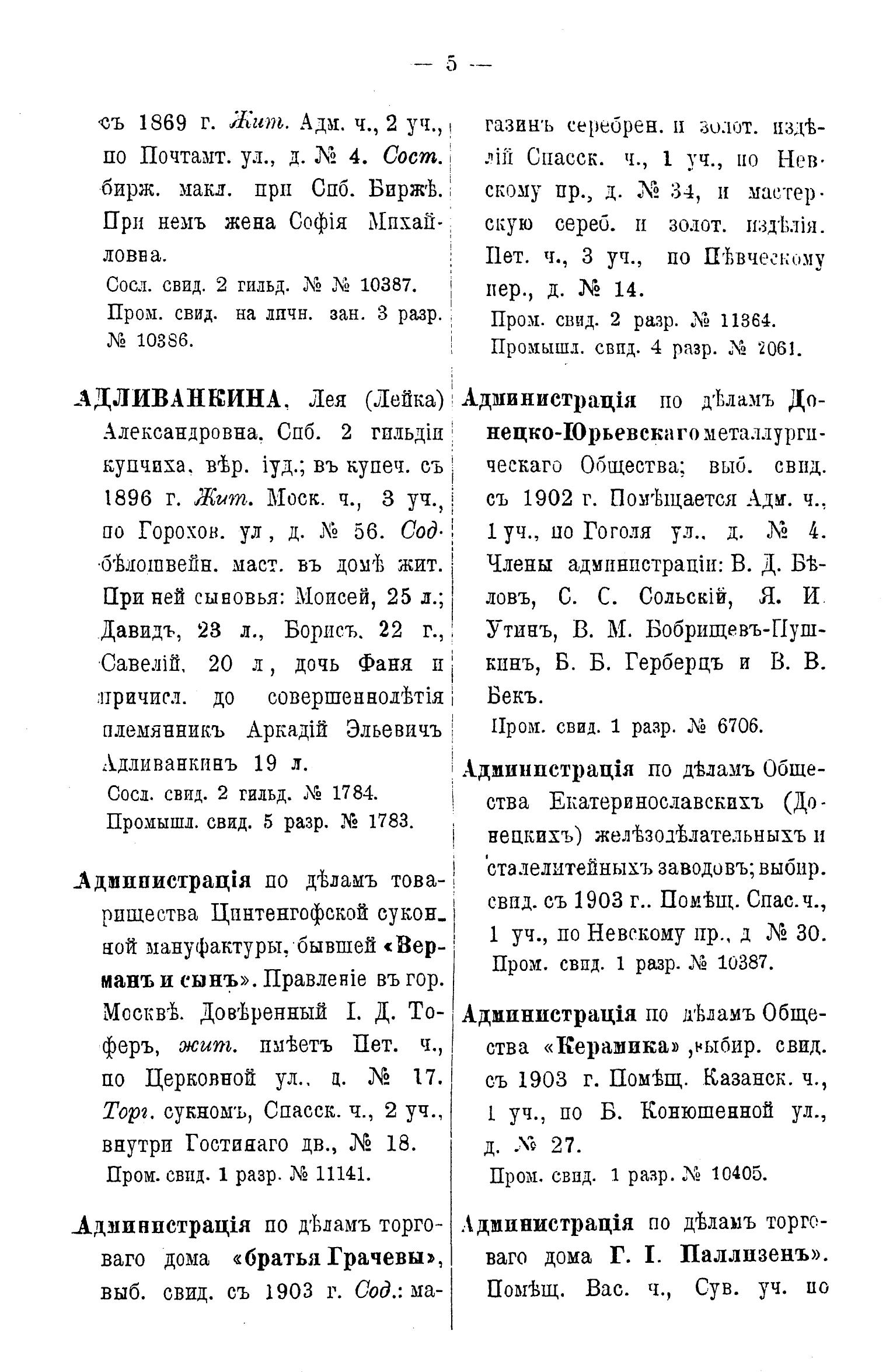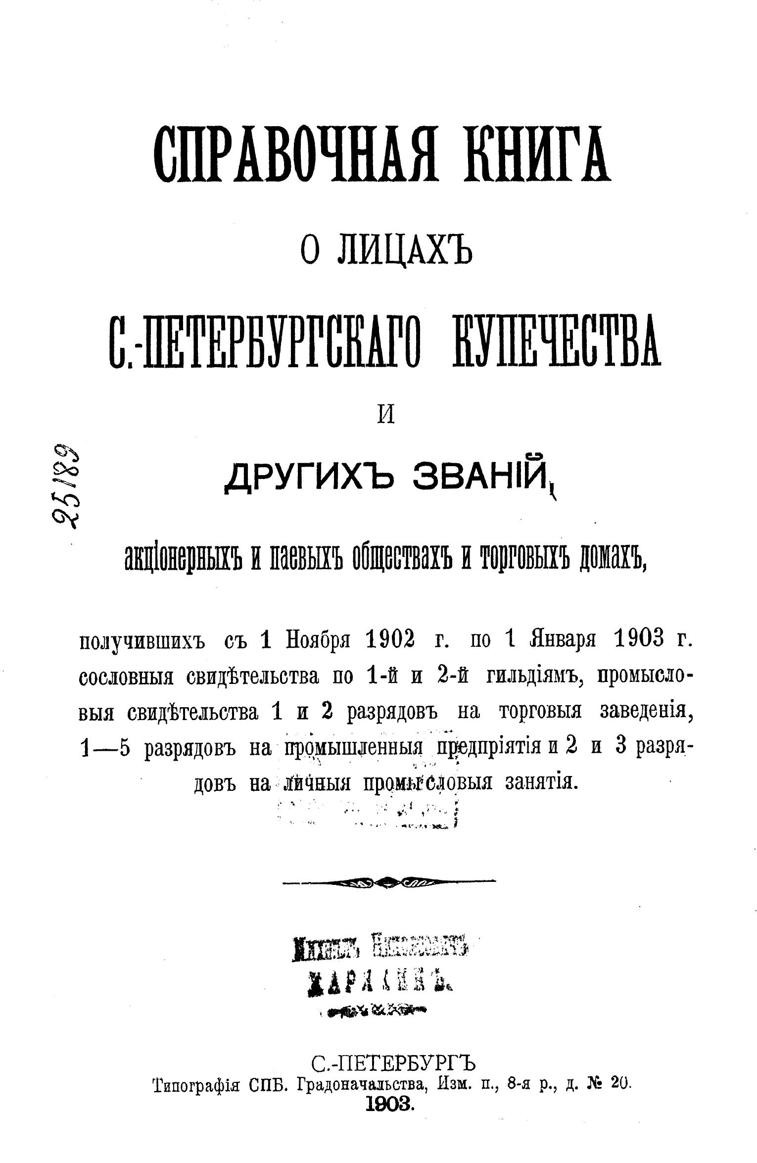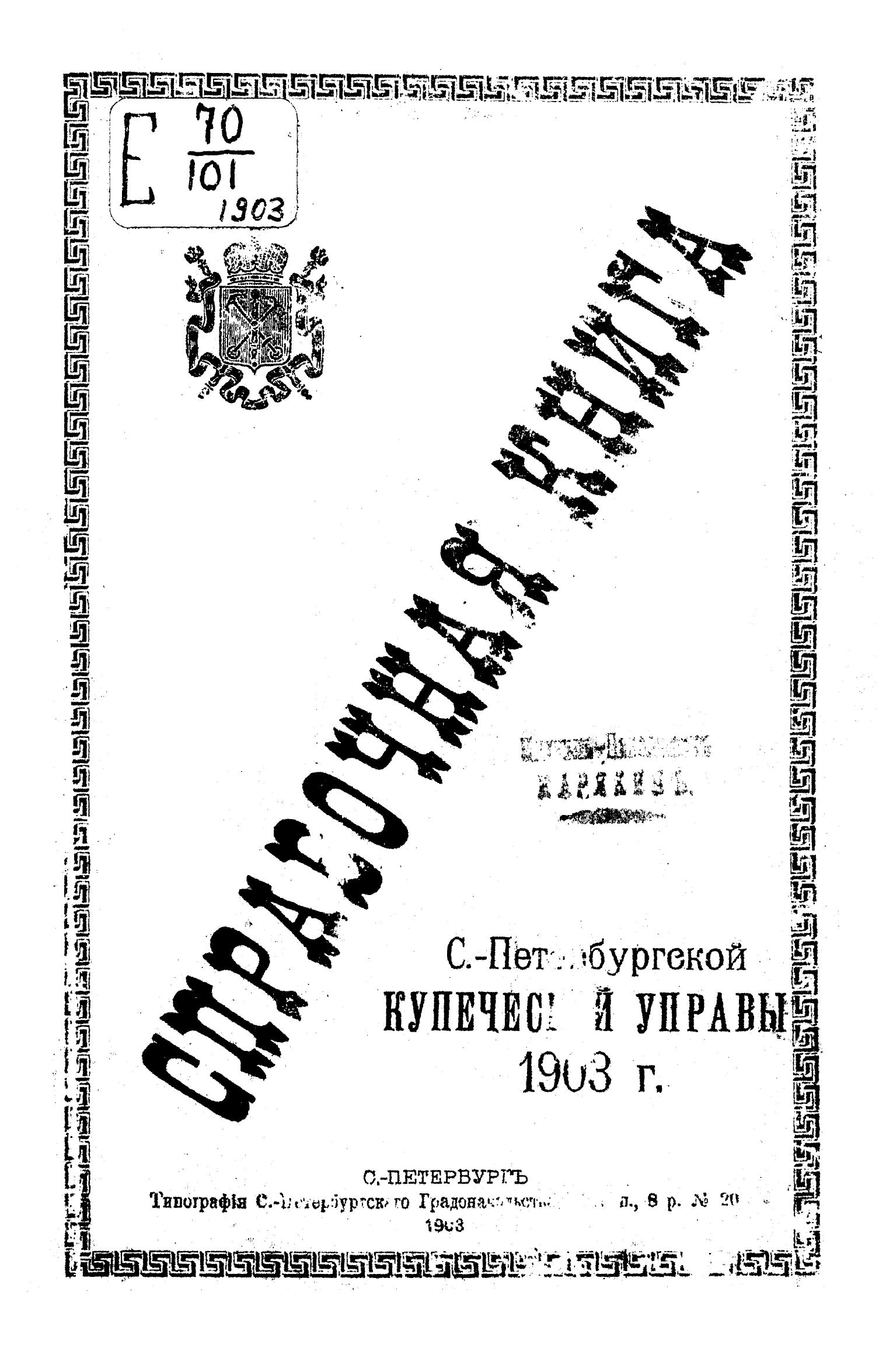 Справочная книга о купцах С.-Петербурга на 1903 год Петербургская купеческая управа