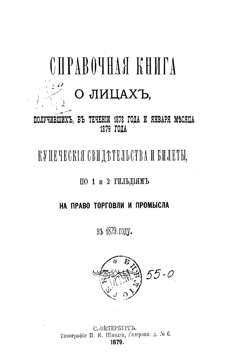 Справочная книга о купцах С.-Петербурга на 1879 год Петербургская купеческая управа