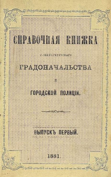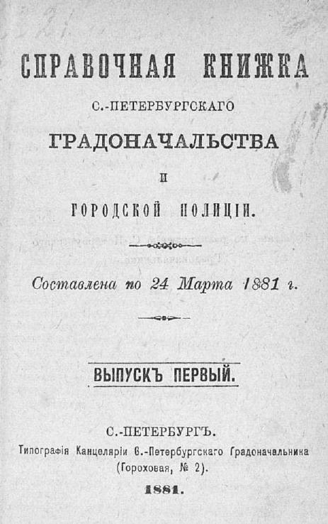 Справочная книжка С.-Петербургского градоначальства и городской полиции, 1881 [в 2 вып.]
