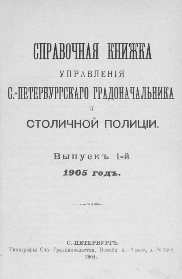Справочная книжка С.-Петербургского градоначальства и городской полиции, 1905 Вып. 1