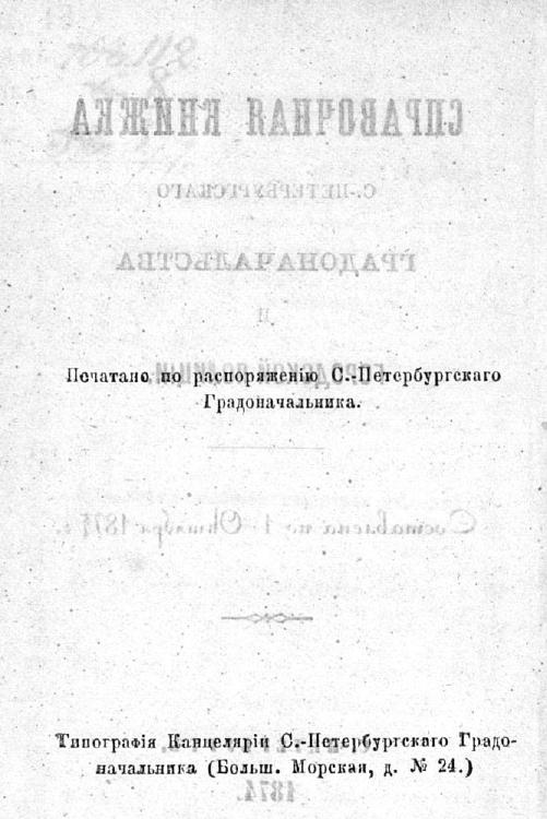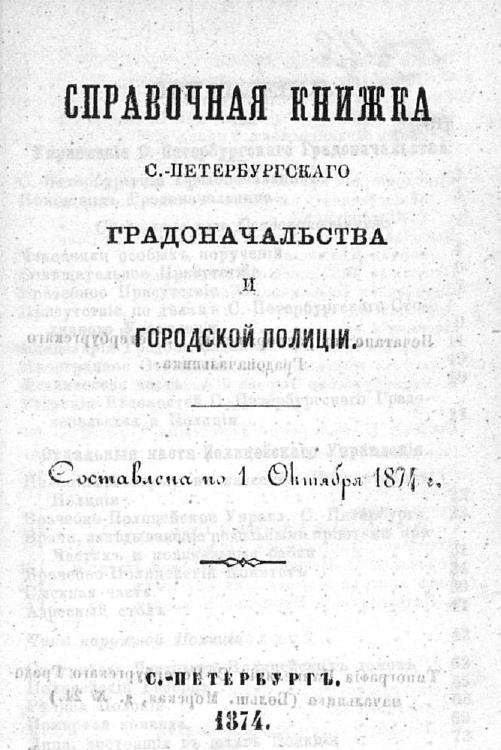 Справочная книжка С.-Петербургского градоначальства и городской полиции, 1874. Октябрь