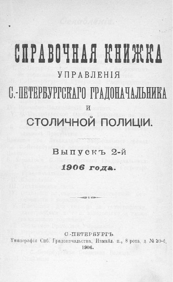 Справочная книжка С.-Петербургского градоначальства и городской полиции, 1906 Вып. 2