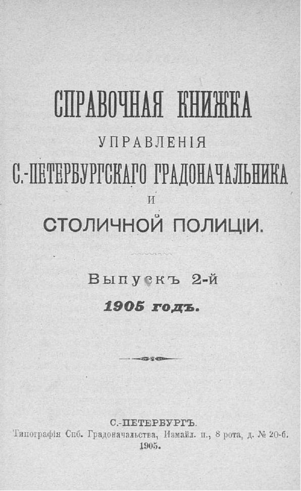 Справочная книжка С.-Петербургского градоначальства и городской полиции, 1905 Вып. 2