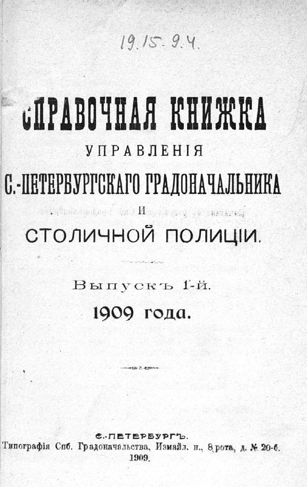 Справочная книжка С.-Петербургского градоначальства и городской полиции, 1909 Вып. 1