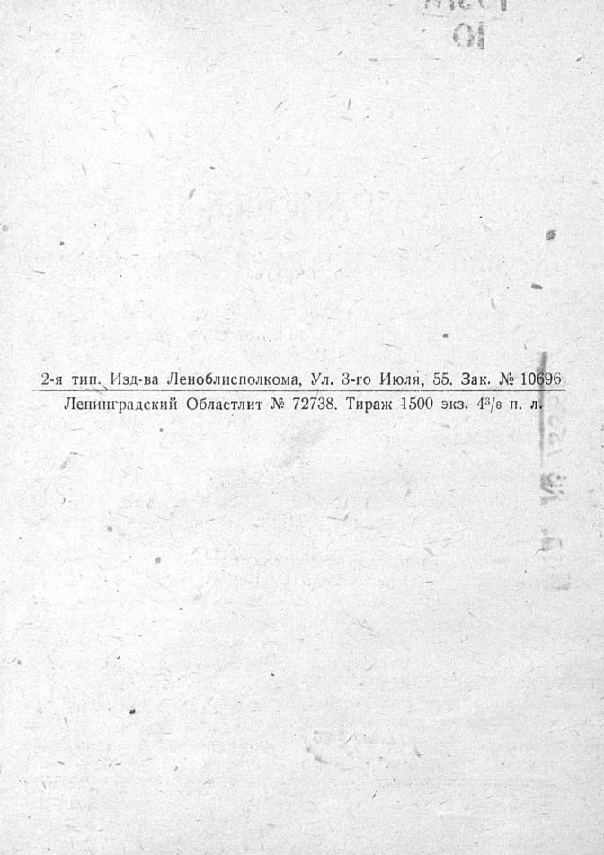 Перешедшие в общественное достояние материалы электронного фонда ЦГПБ им. В.В. Маяковского. Сведения о издательстве или типографии: изд. Ленингр. райисполкома. Место издания: Л.
