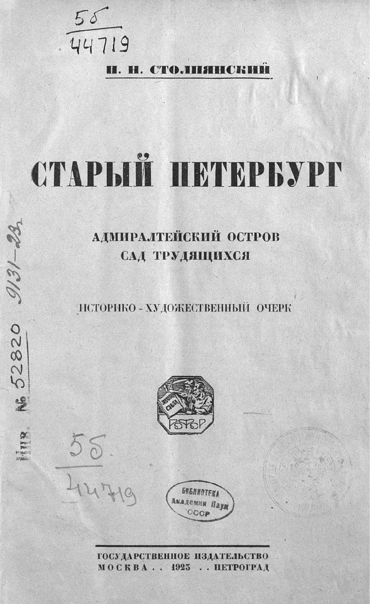 Старый Петербург. Адмиралтейский остров. Сад трудящихся