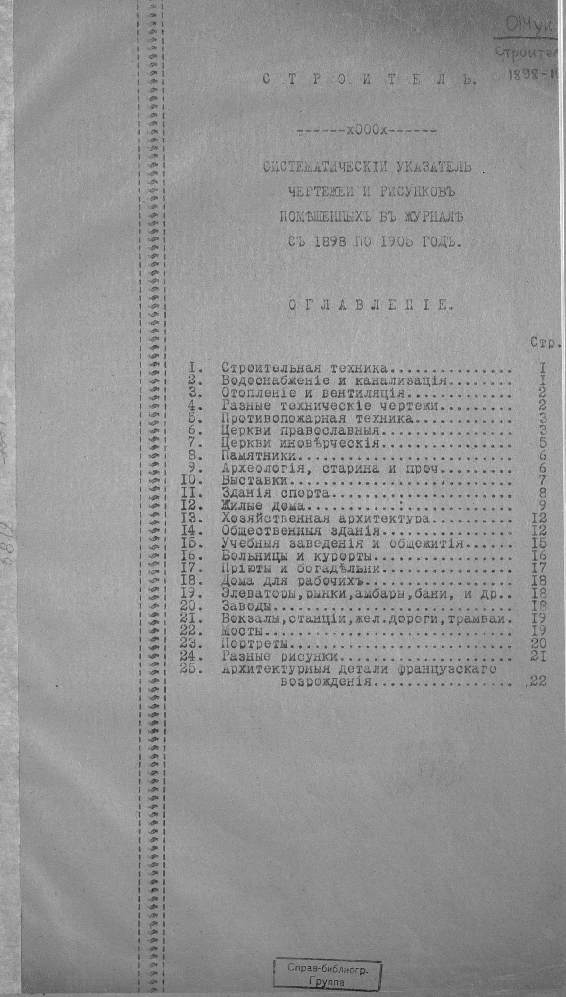 Строитель : Систем. указатель чертежей и рис., помещенных в журн. с 1898 по 1905 год