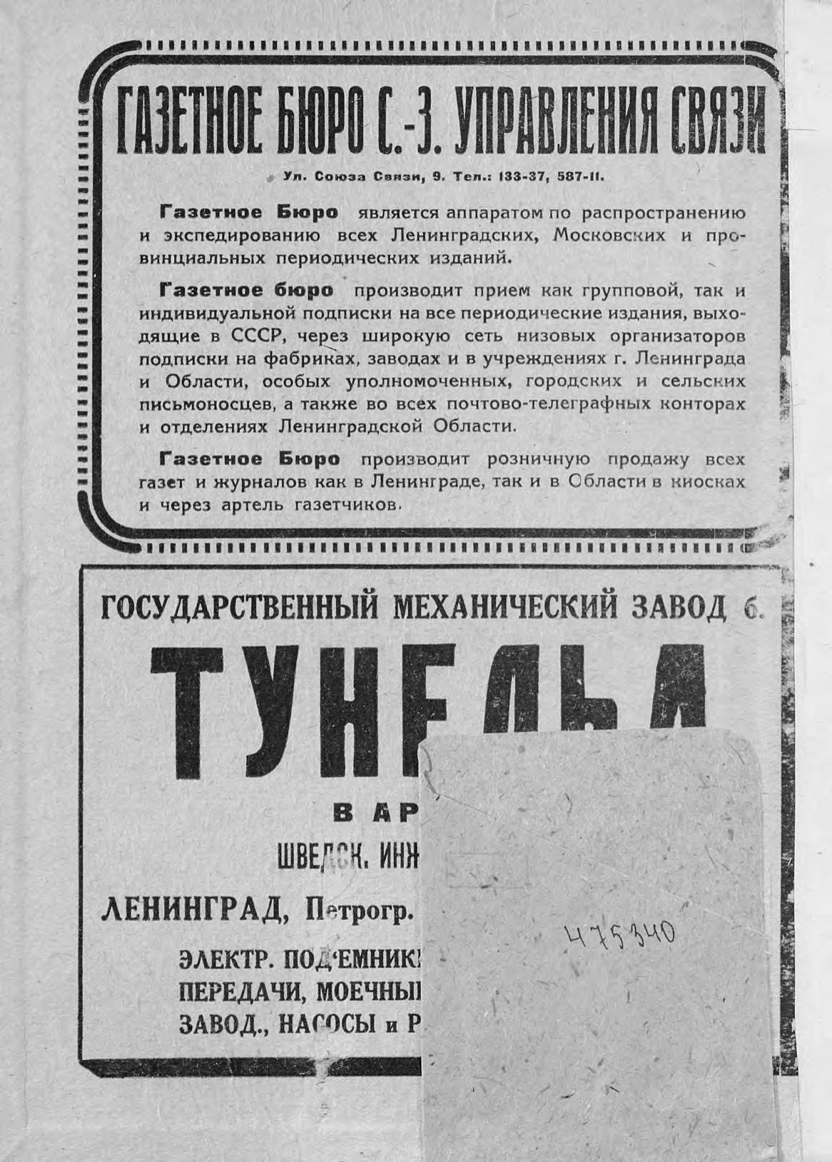 Перешедшие в общественное достояние материалы электронного фонда ЦГПБ им. В.В. Маяковского. Сведения о издательстве или типографии: Орг. отдел Лен. обл. исполкома и Лен. совета. Место издания: Л.