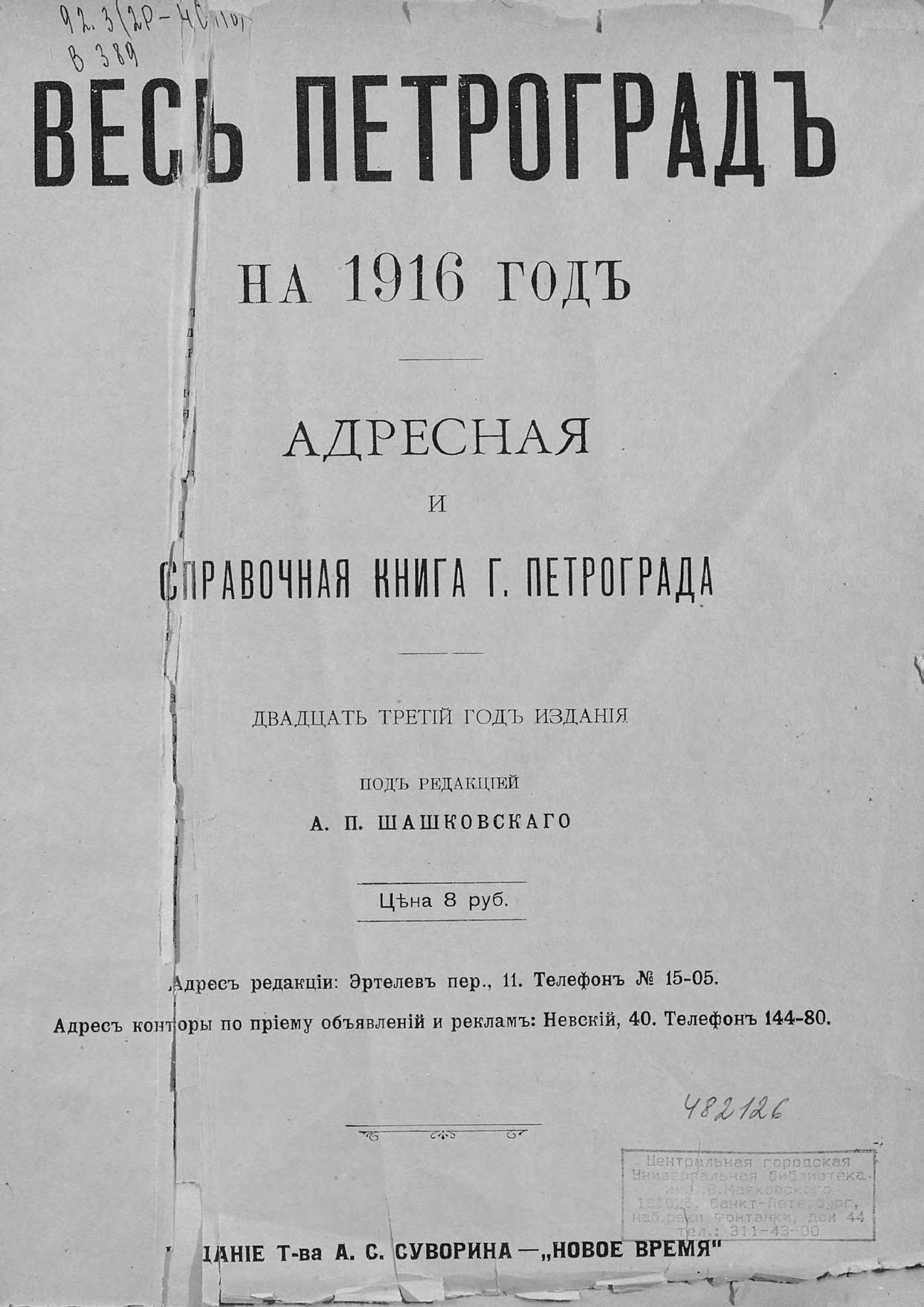 Перешедшие в общественное достояние материалы электронного фонда ЦГПБ им. В.В. Маяковского. Сведения о издательстве или типографии: Новое время. Место издания: Пг.