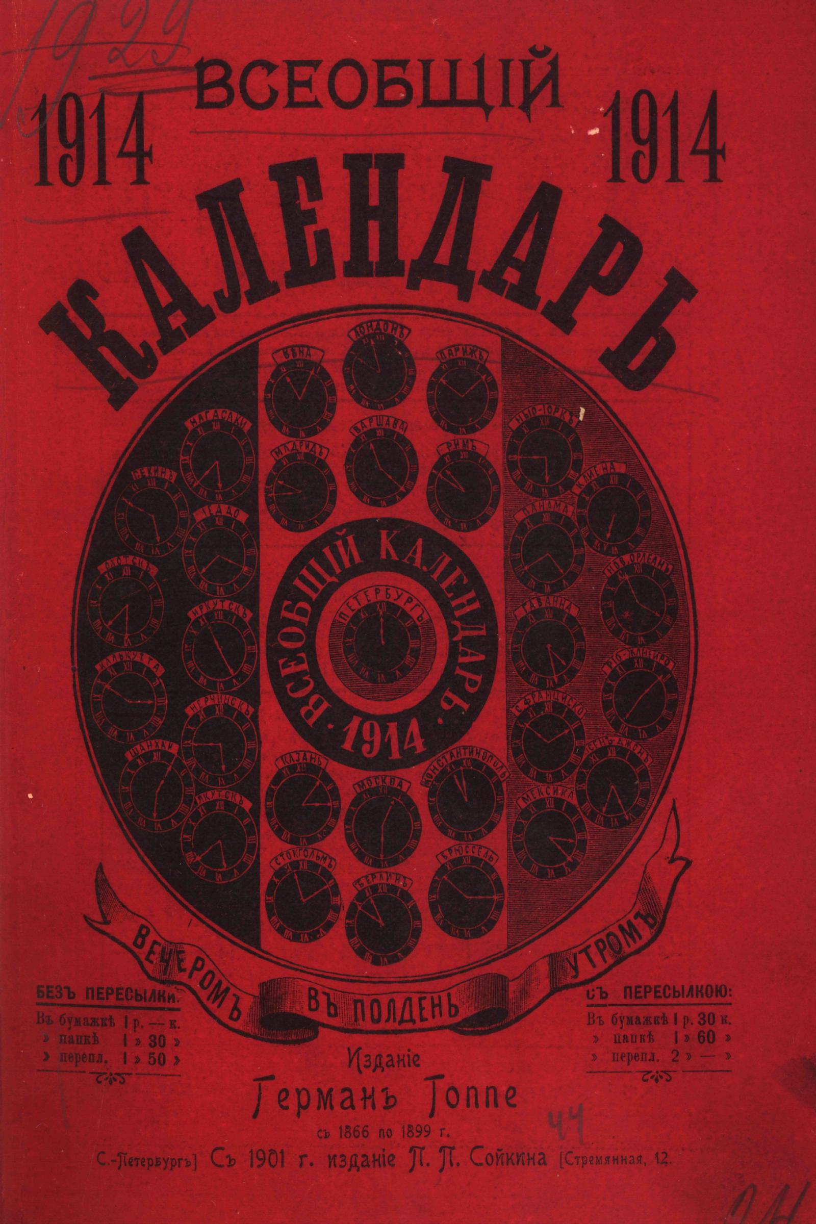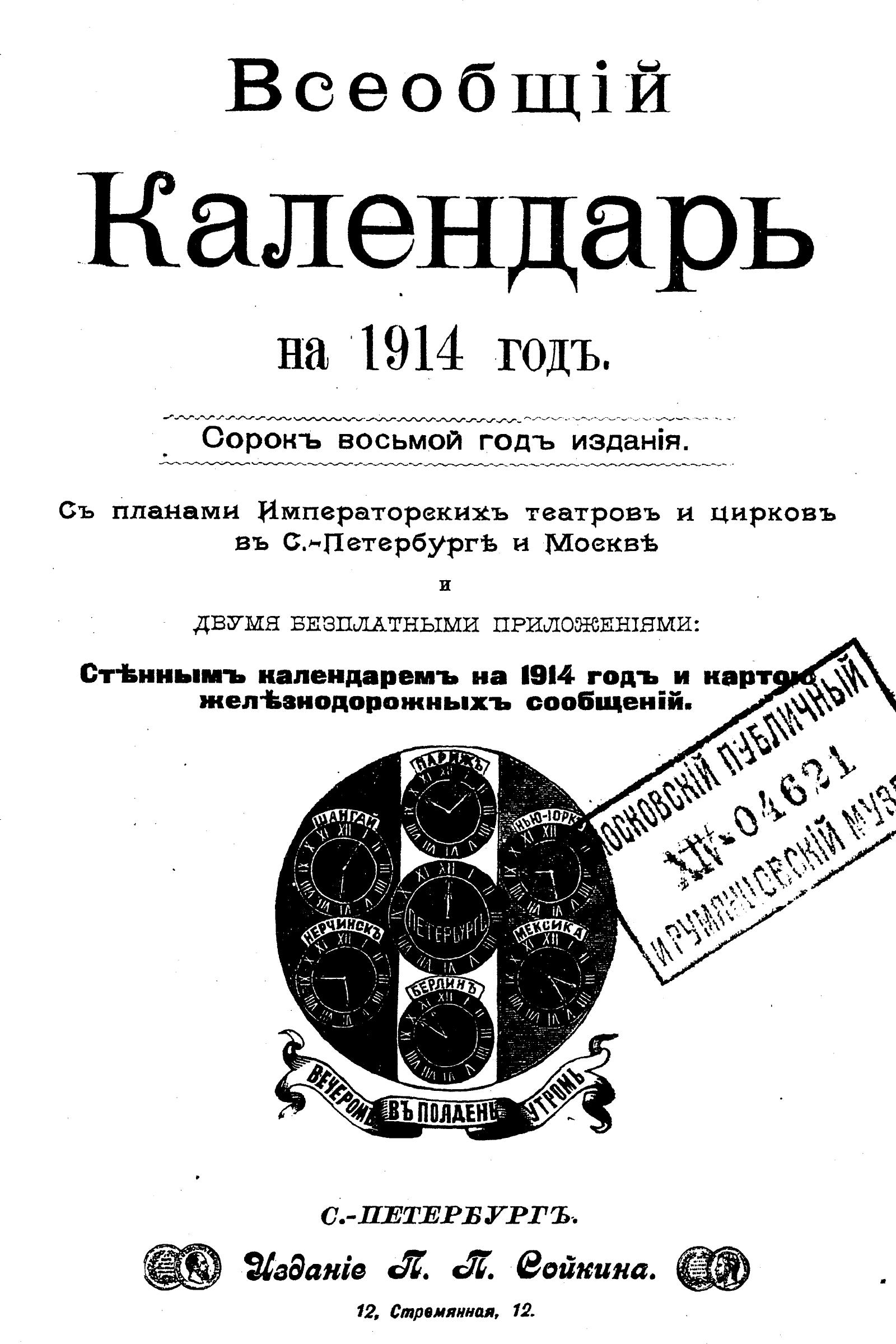 Всеобщий календарь на 1914 г. 48-й г. изд. : С 2-мя прил.: 1) стенным календарем и 2) картою ж/д. сообщений