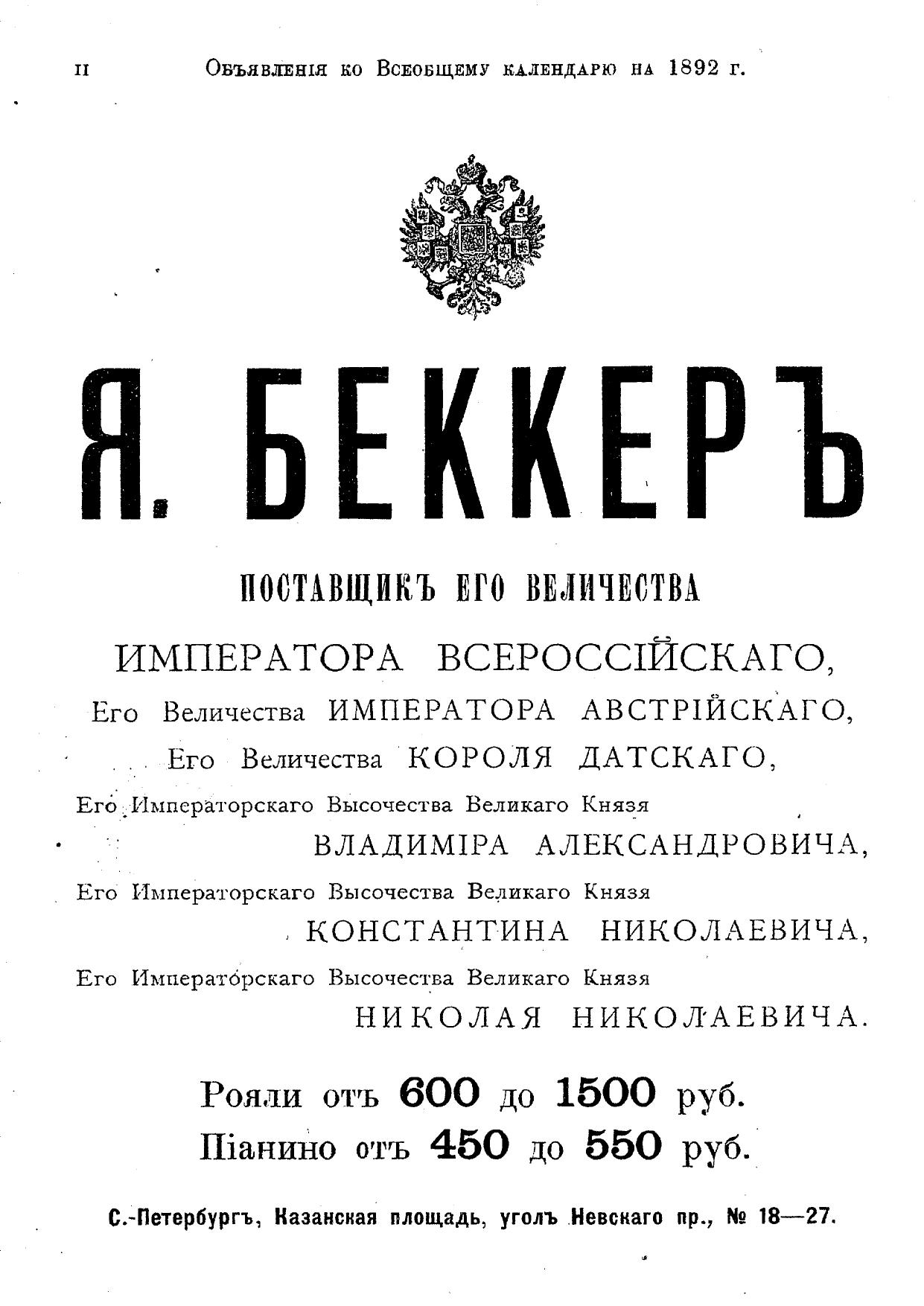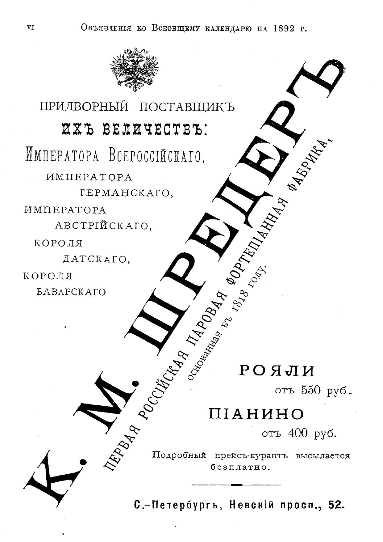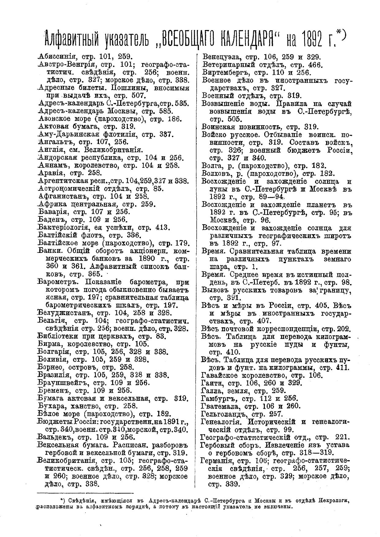 Всеобщий календарь на 1892 г. 26-й г. изд. : с 4 портр., планами Императ. и частных театров и цирков в С.-Петербурге и Москве и 2-мя прил.: 1) картой путей сообщения и 2) стенным календарем
