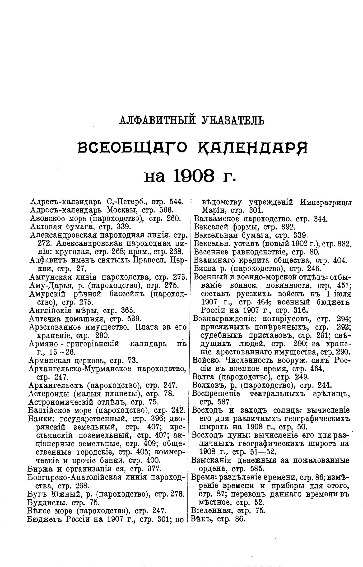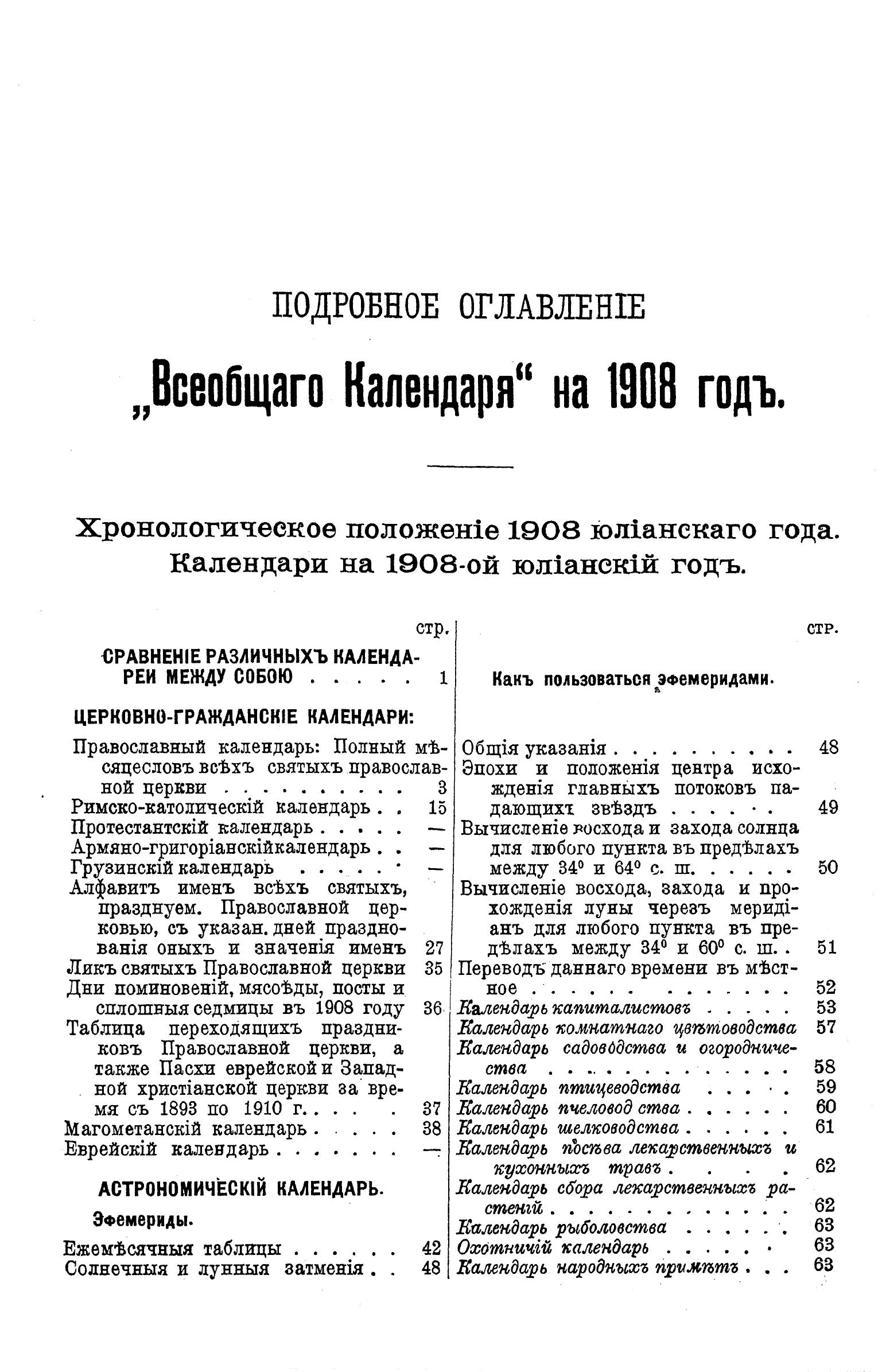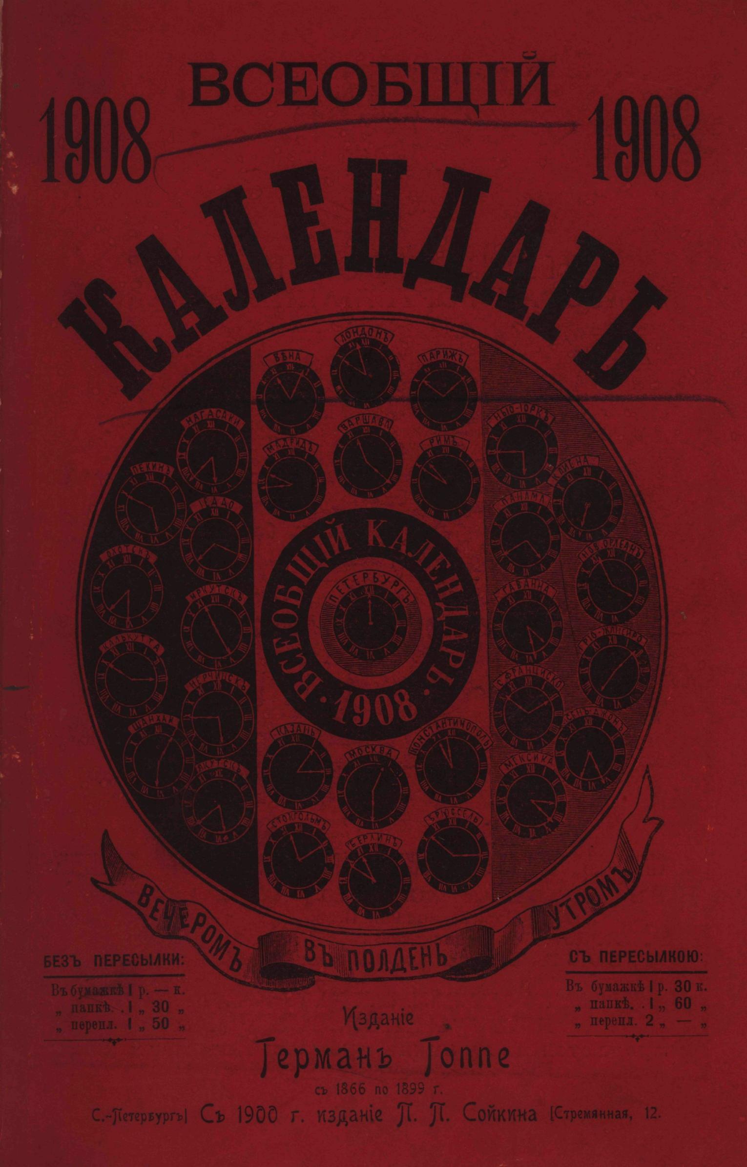 Всеобщий календарь на 1908 г. 42-й г. изд. : с 2-мя прил.: стенным календарем и картой ж/д. сообщений