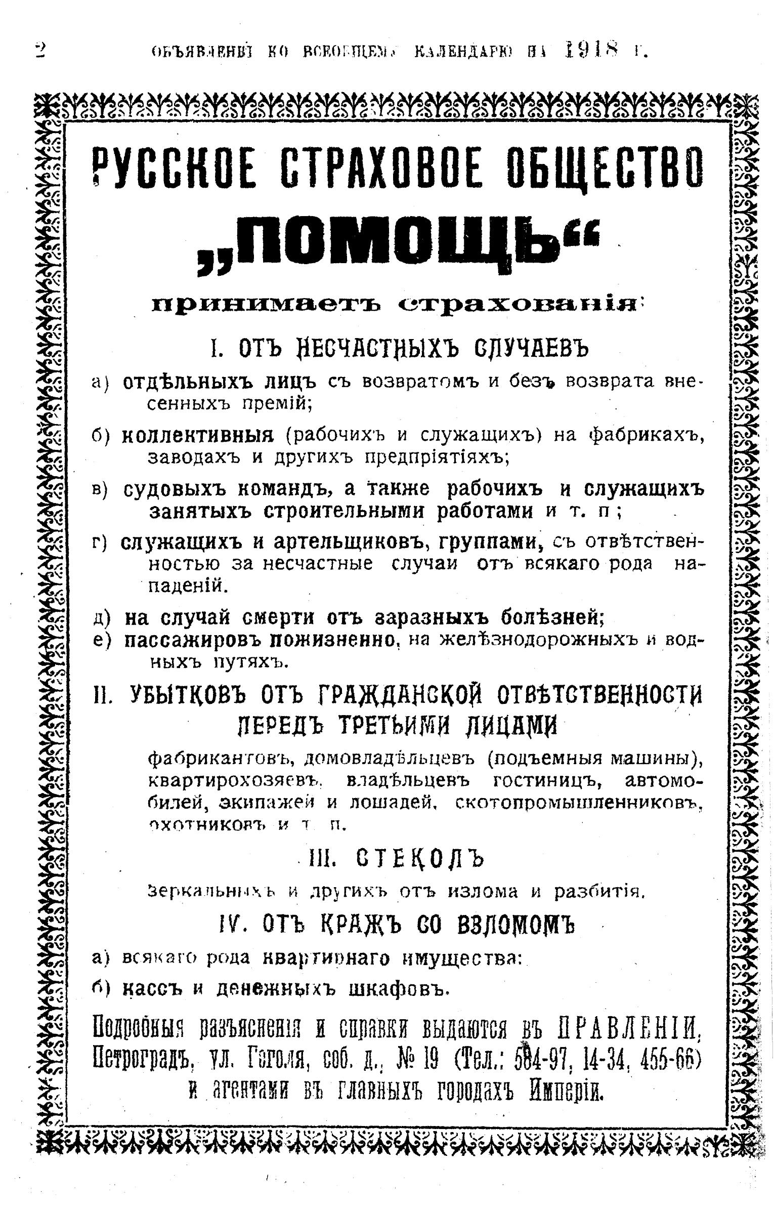 Всеобщий календарь на 1918 г. (сокращ.) 52-й г. изд. : с прил.: стенным календарем