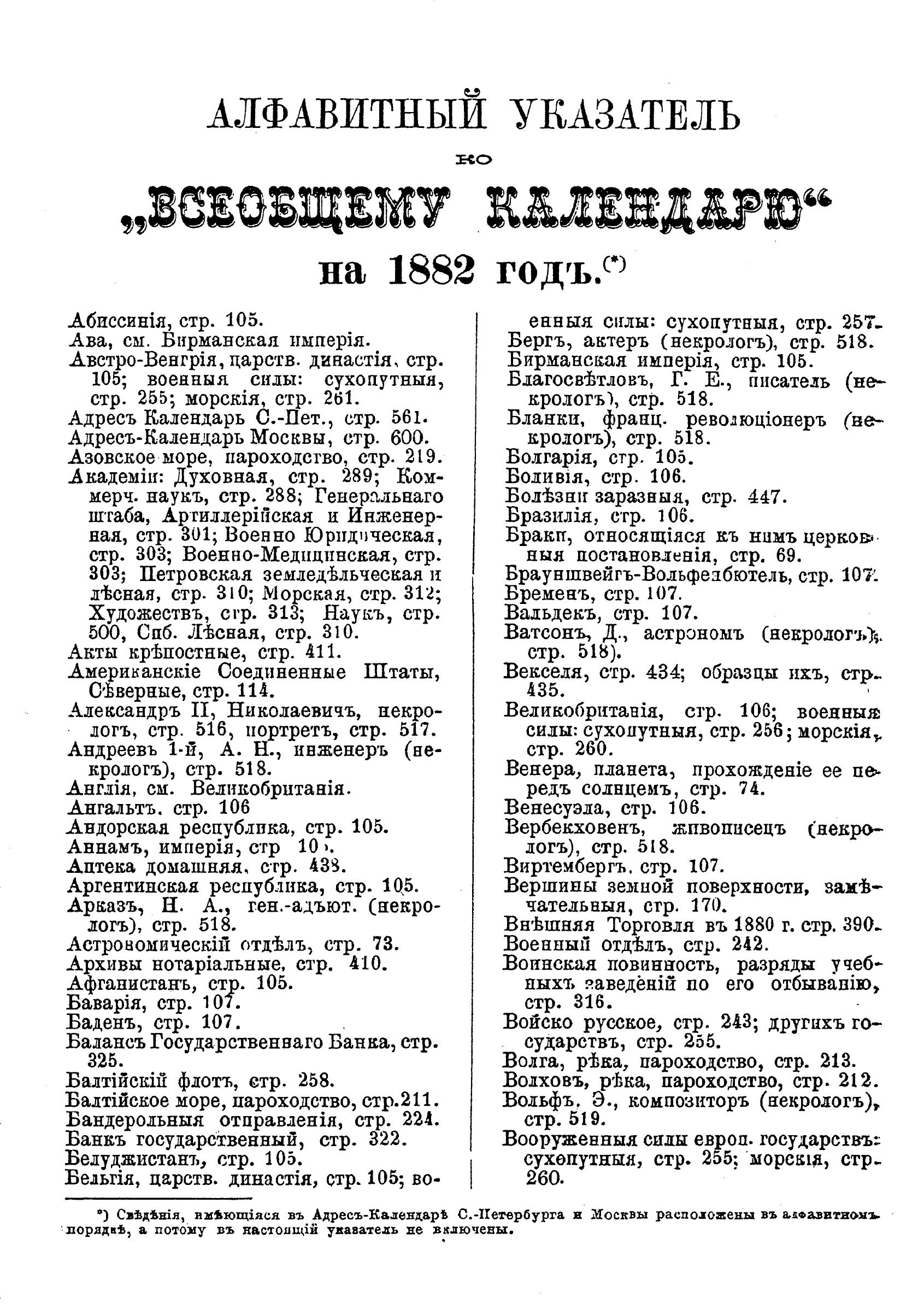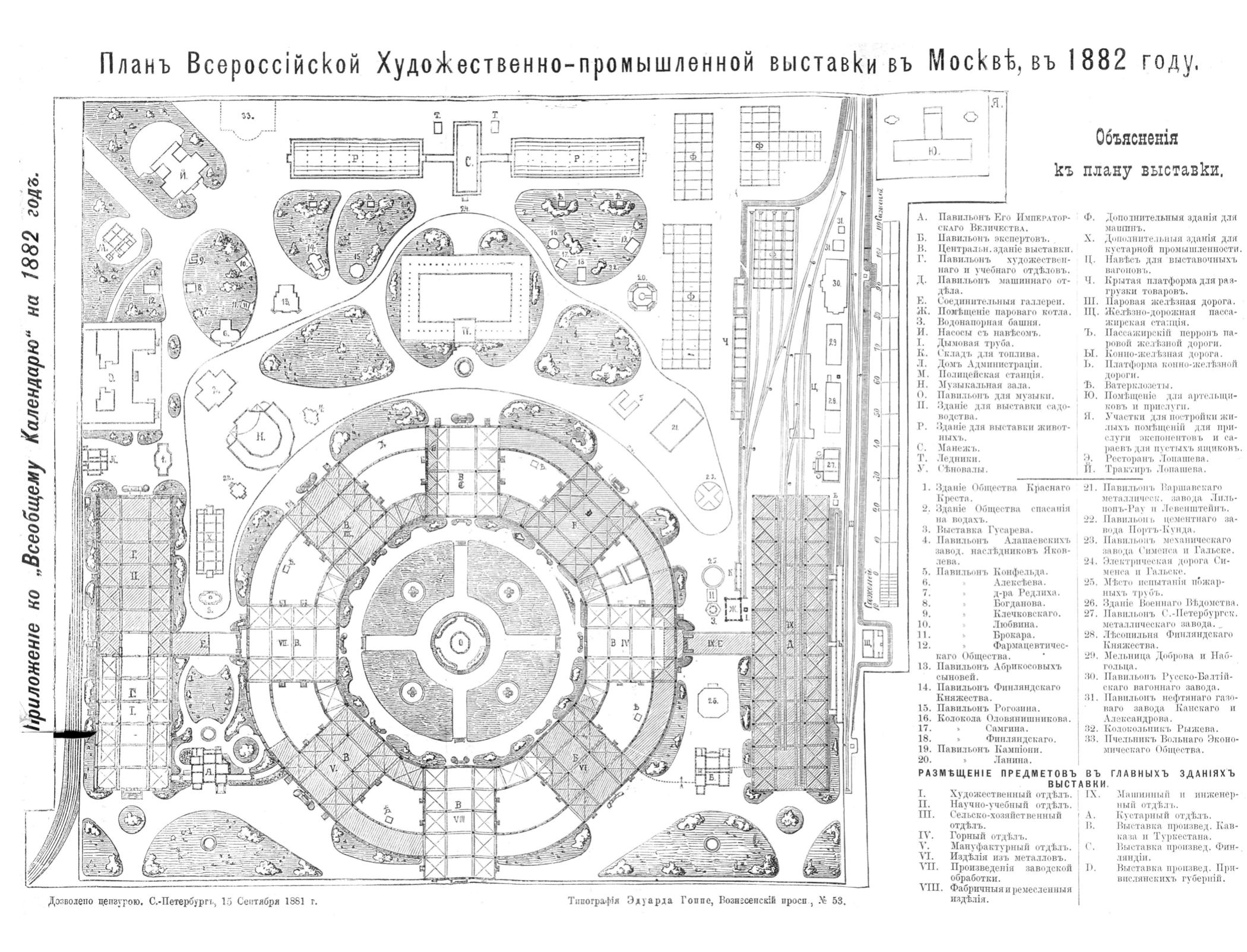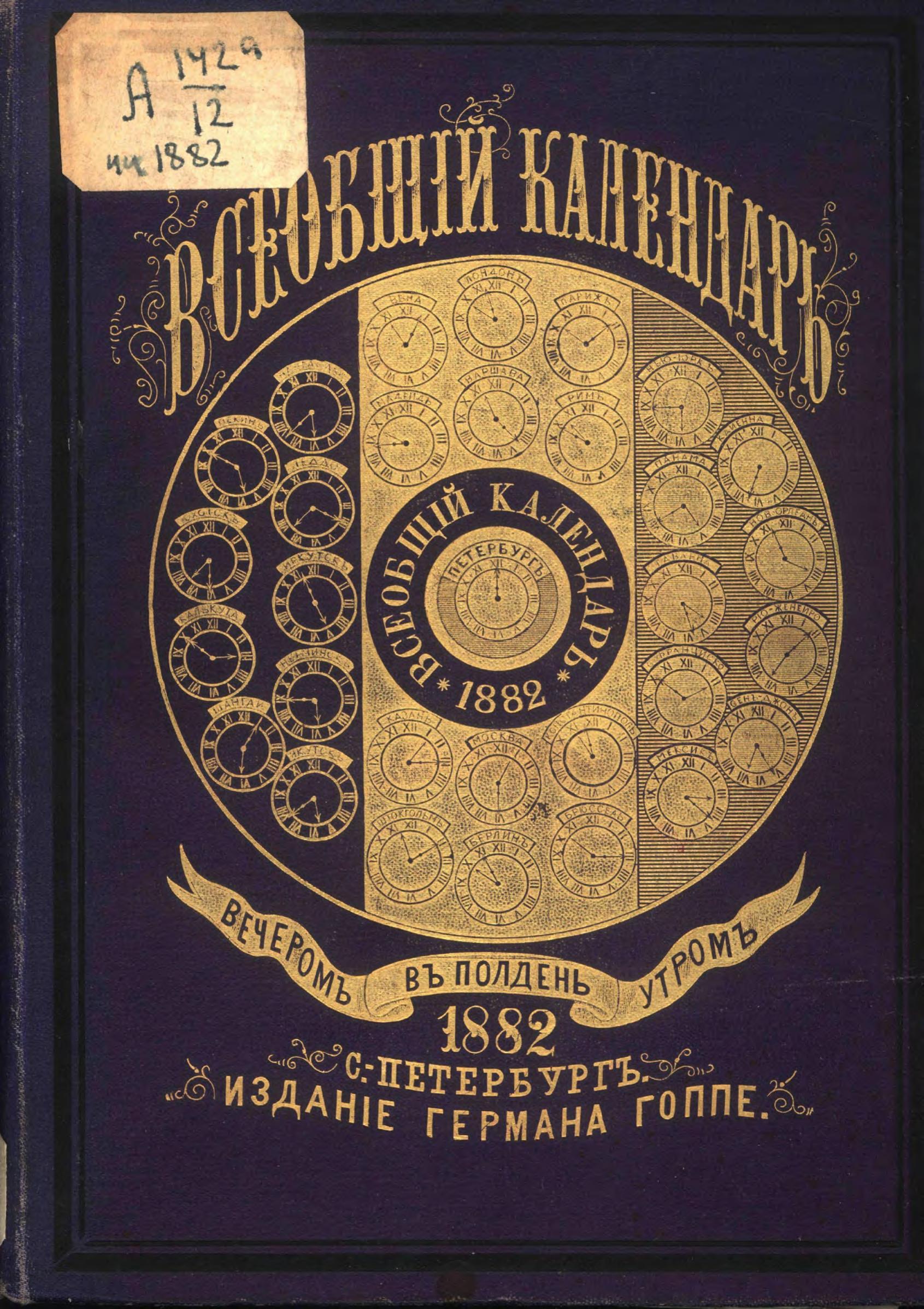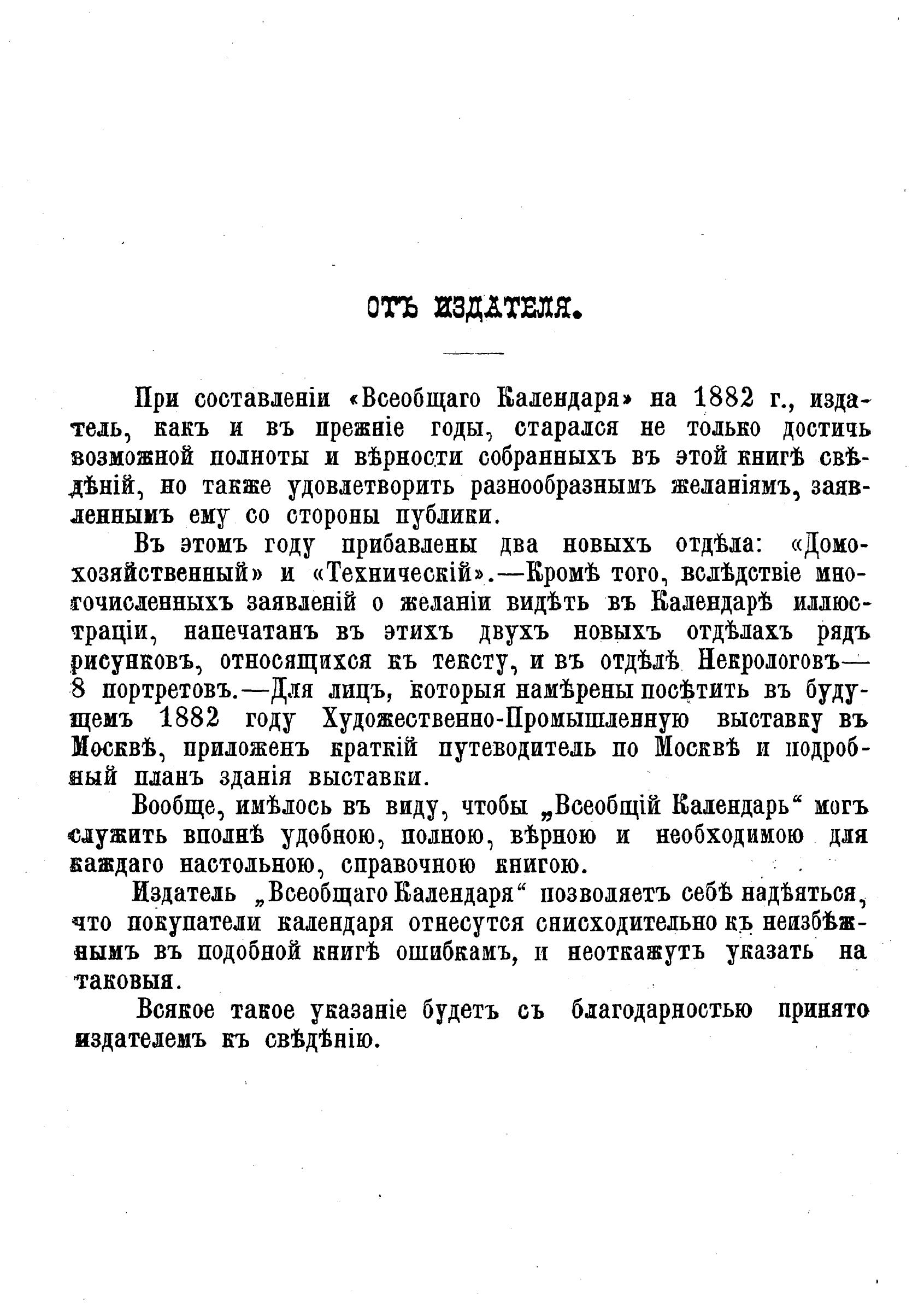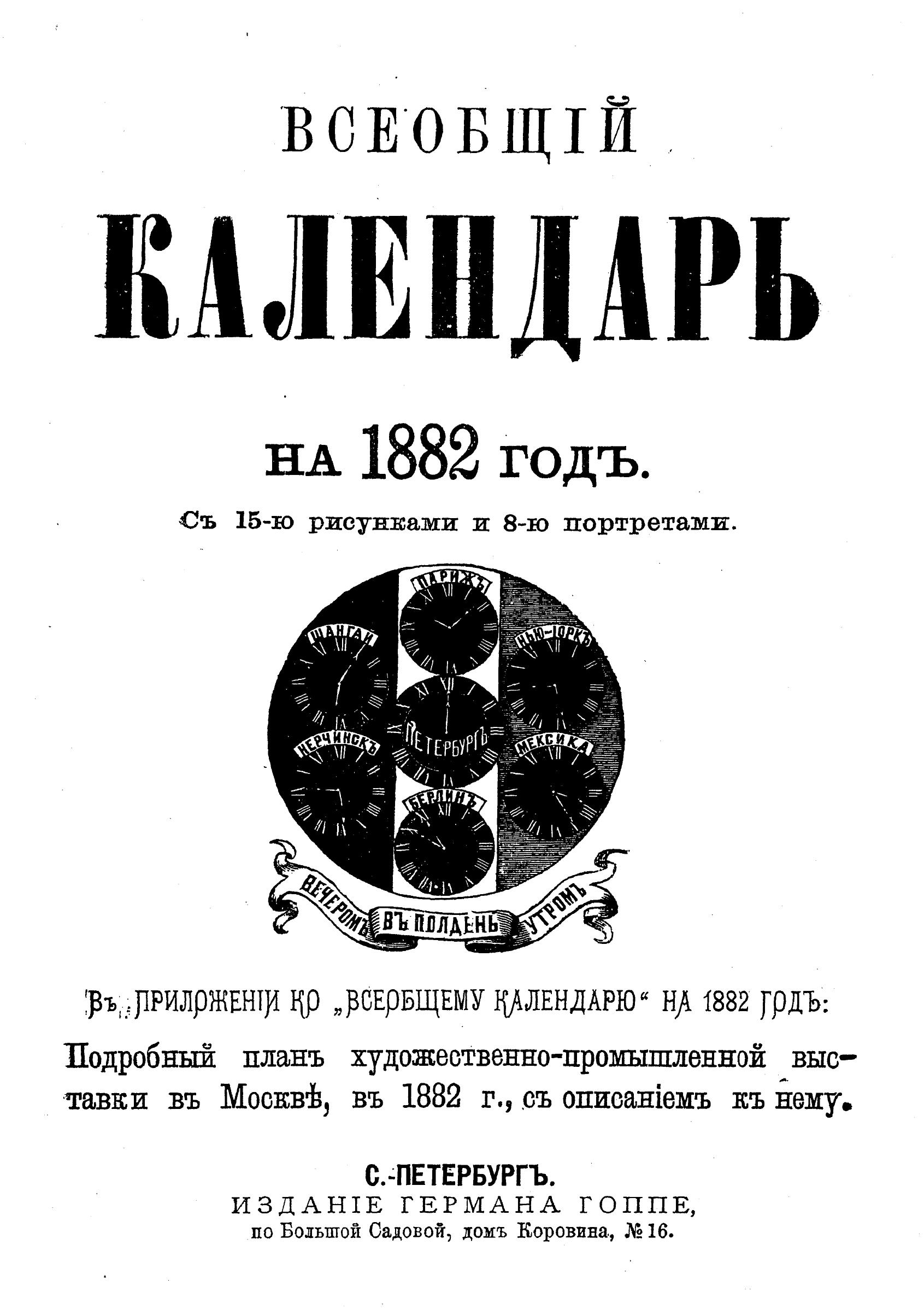 Всеобщий календарь на 1882 г. с подробным планом Худож.-пром. выставки в Москве в 1882 г., с описанием к нему