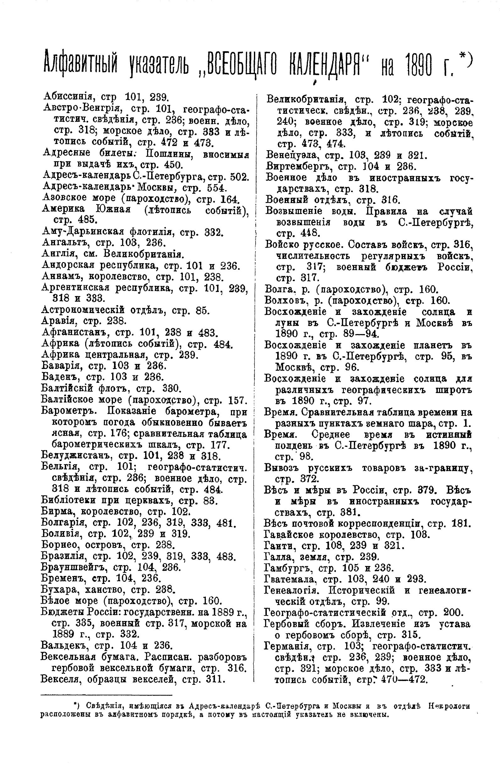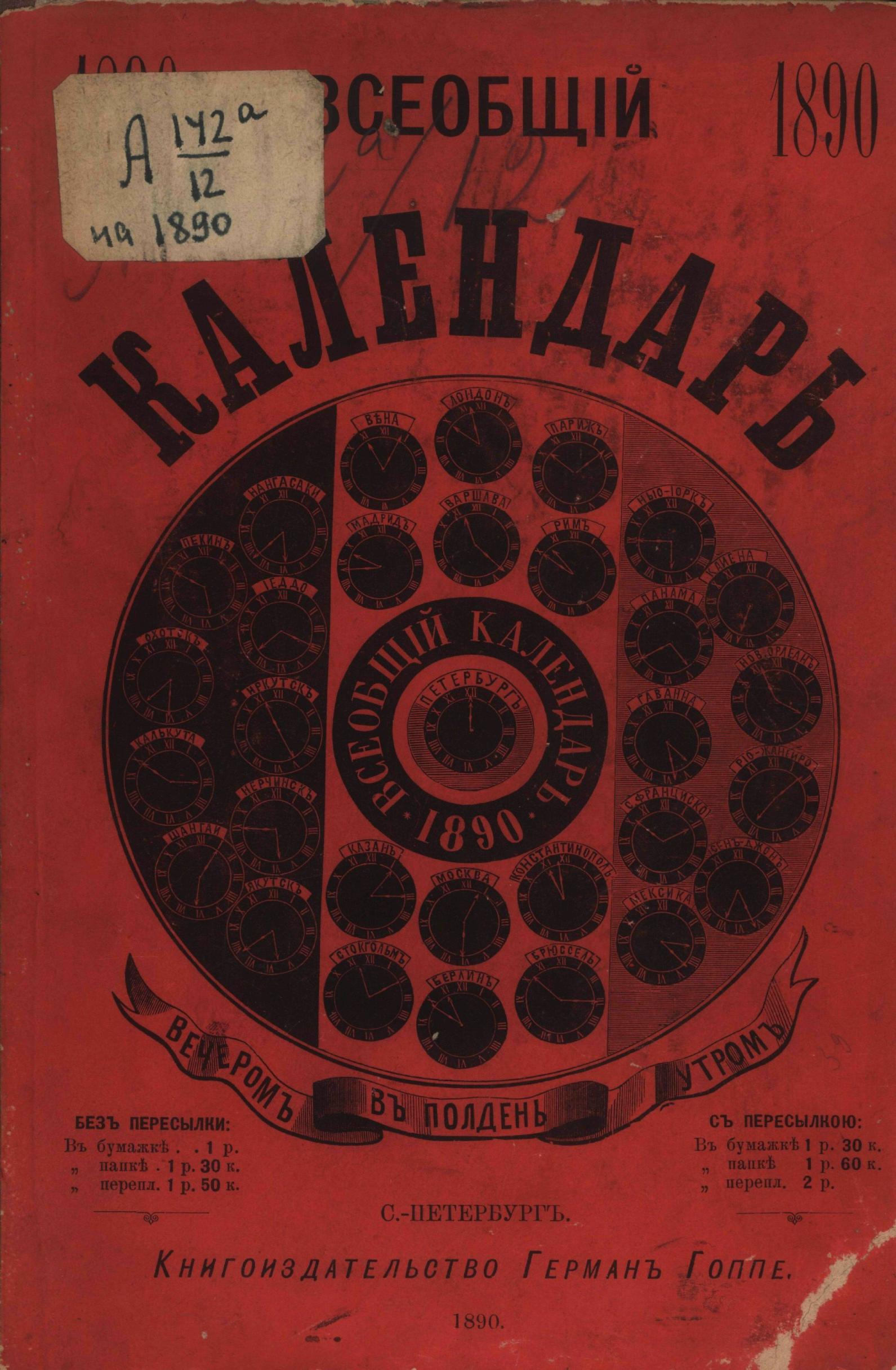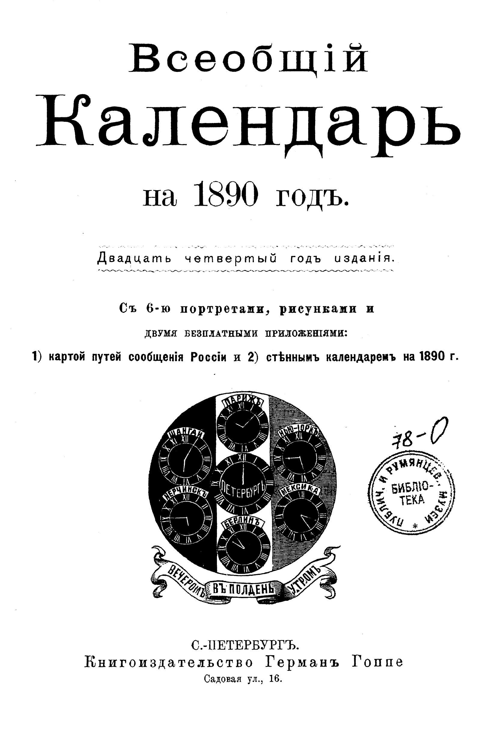 Всеобщий календарь на 1890 г. 24-й г. изд. : с 2-мя прил.: 1) картой путей сообщения России и 2) стенным календарем
