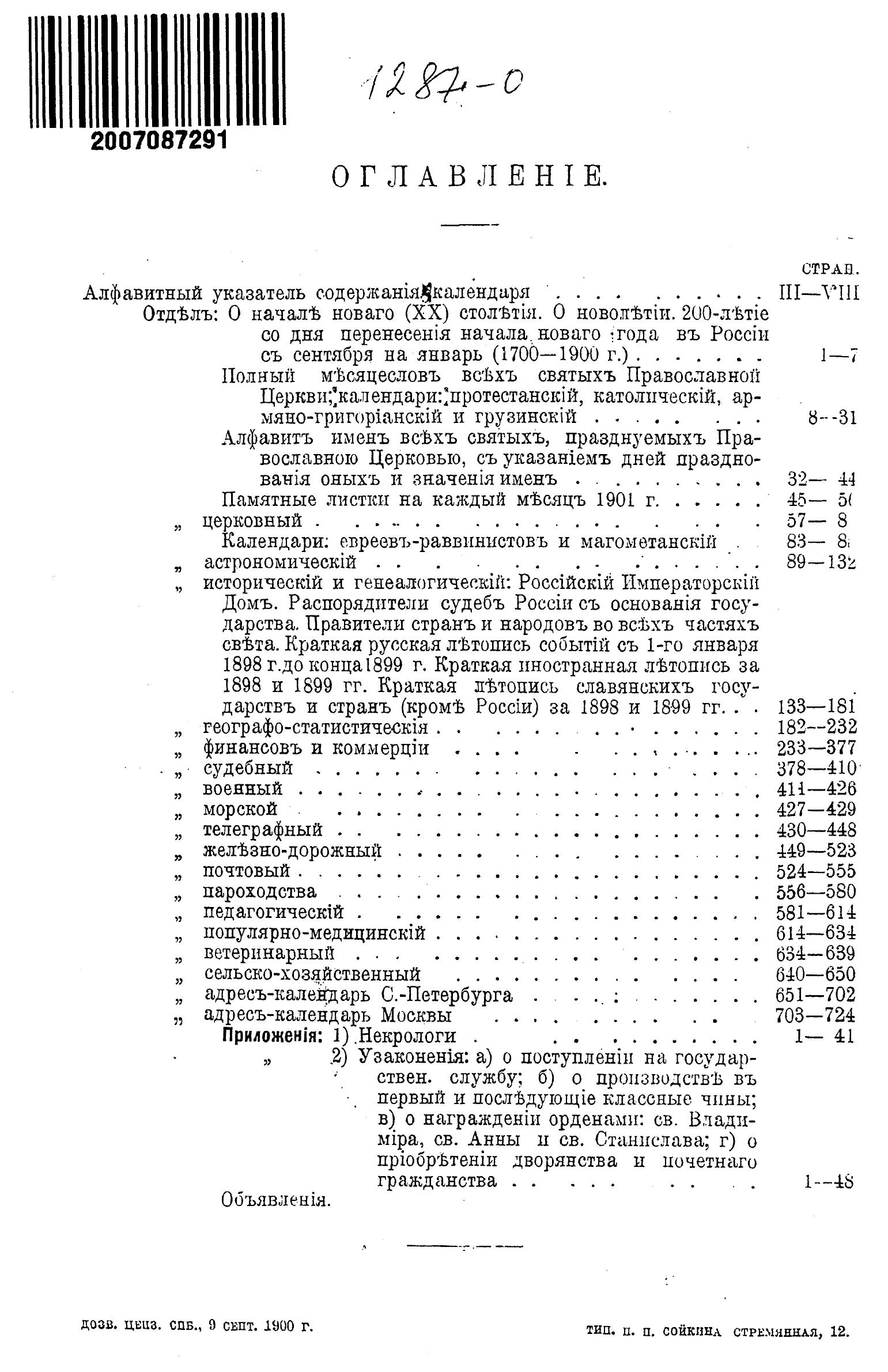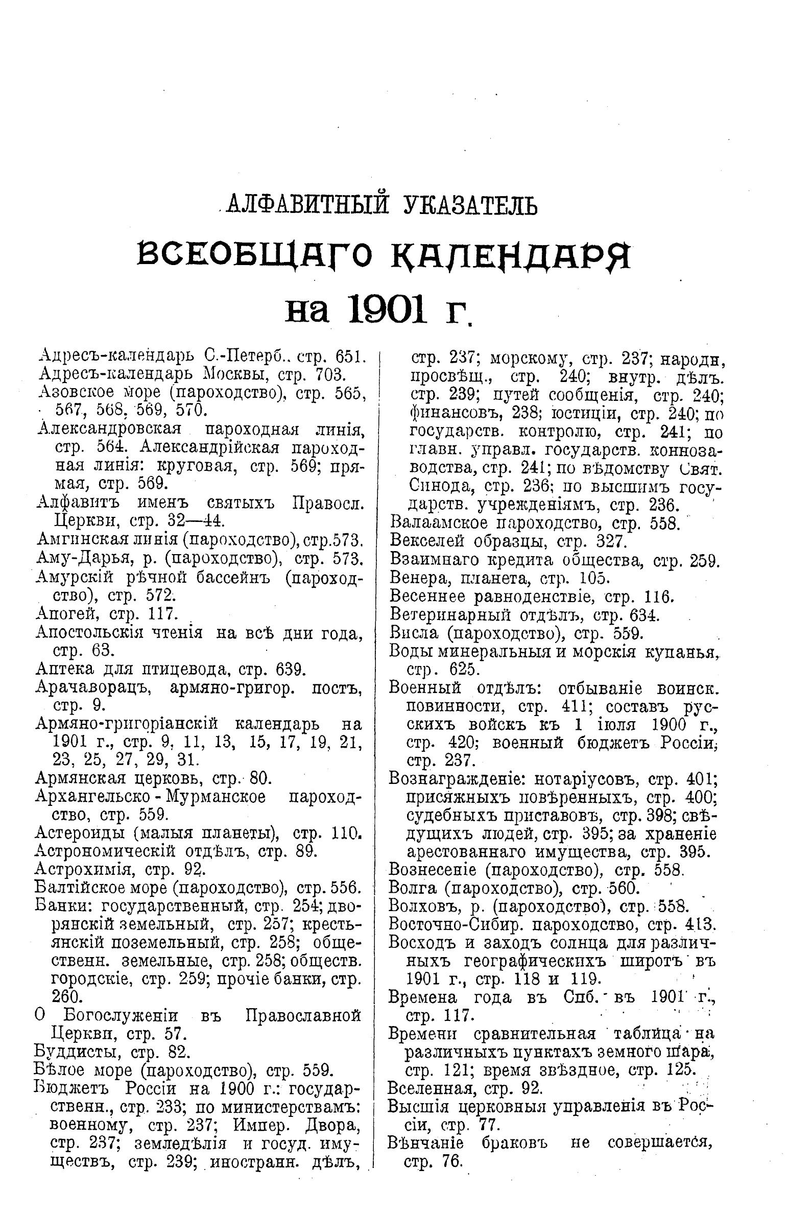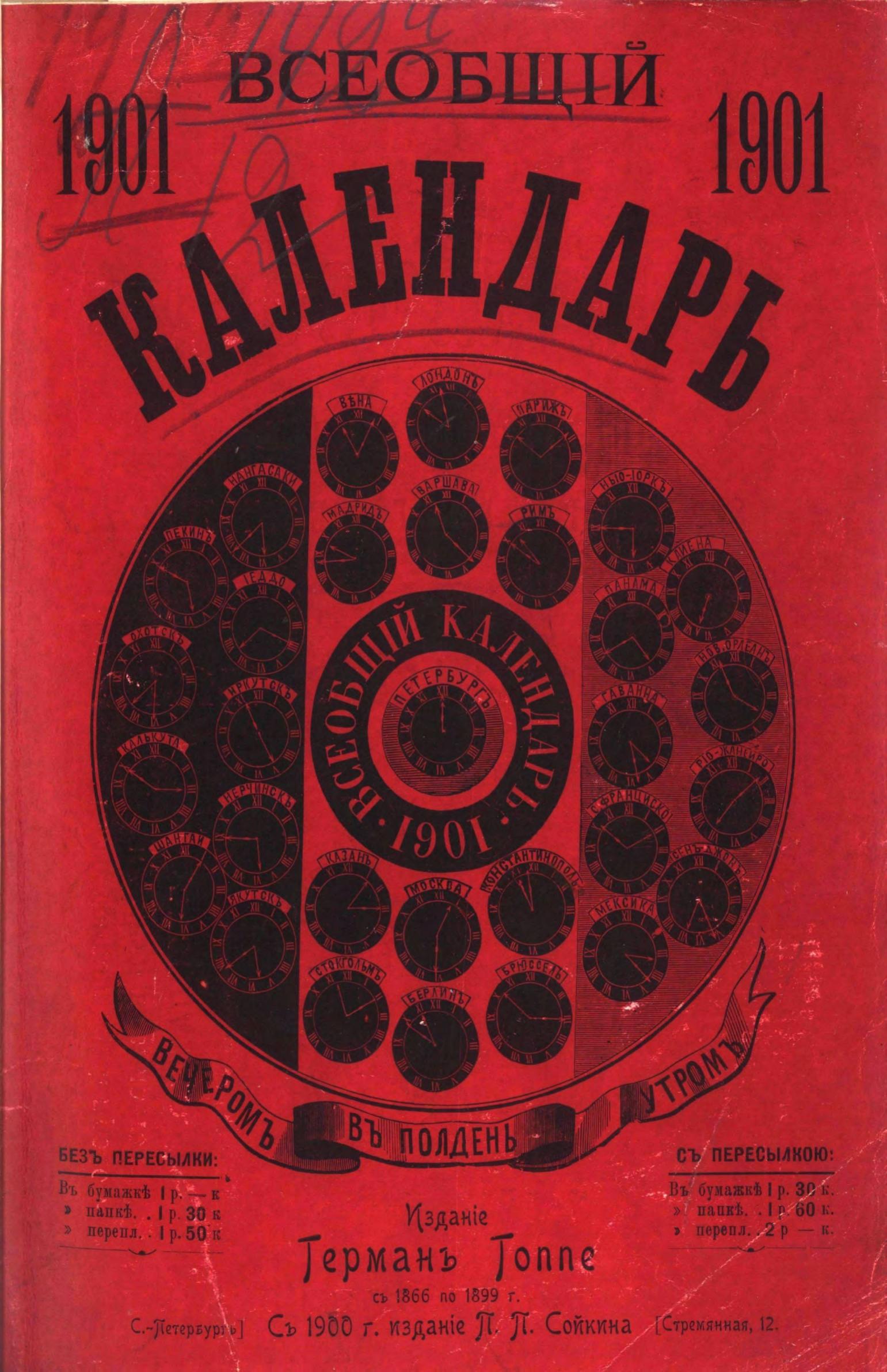Всеобщий календарь на 1901 г. 35-й г. изд. : с прил.: стенным календарем и картой путей сообщения России