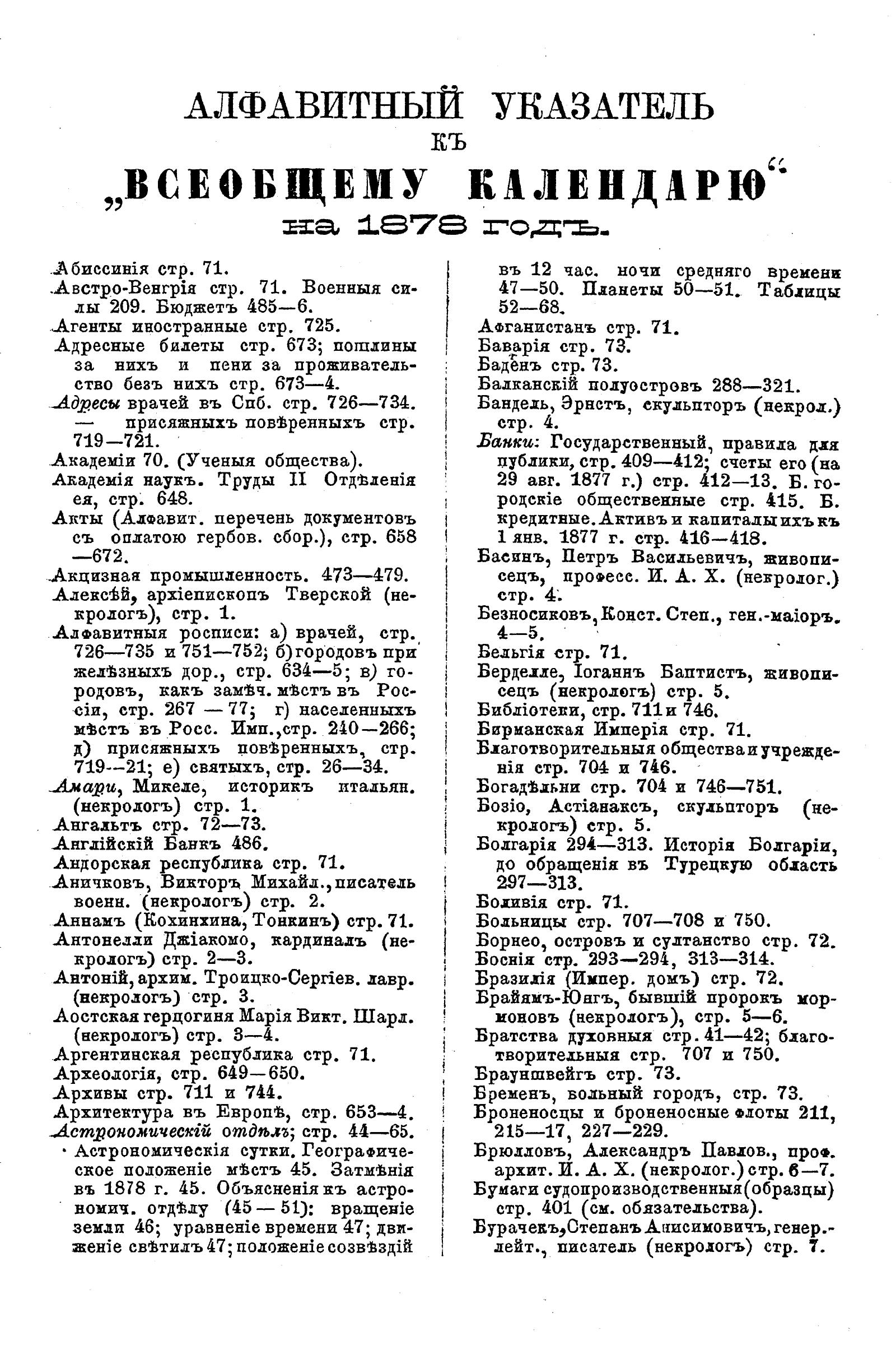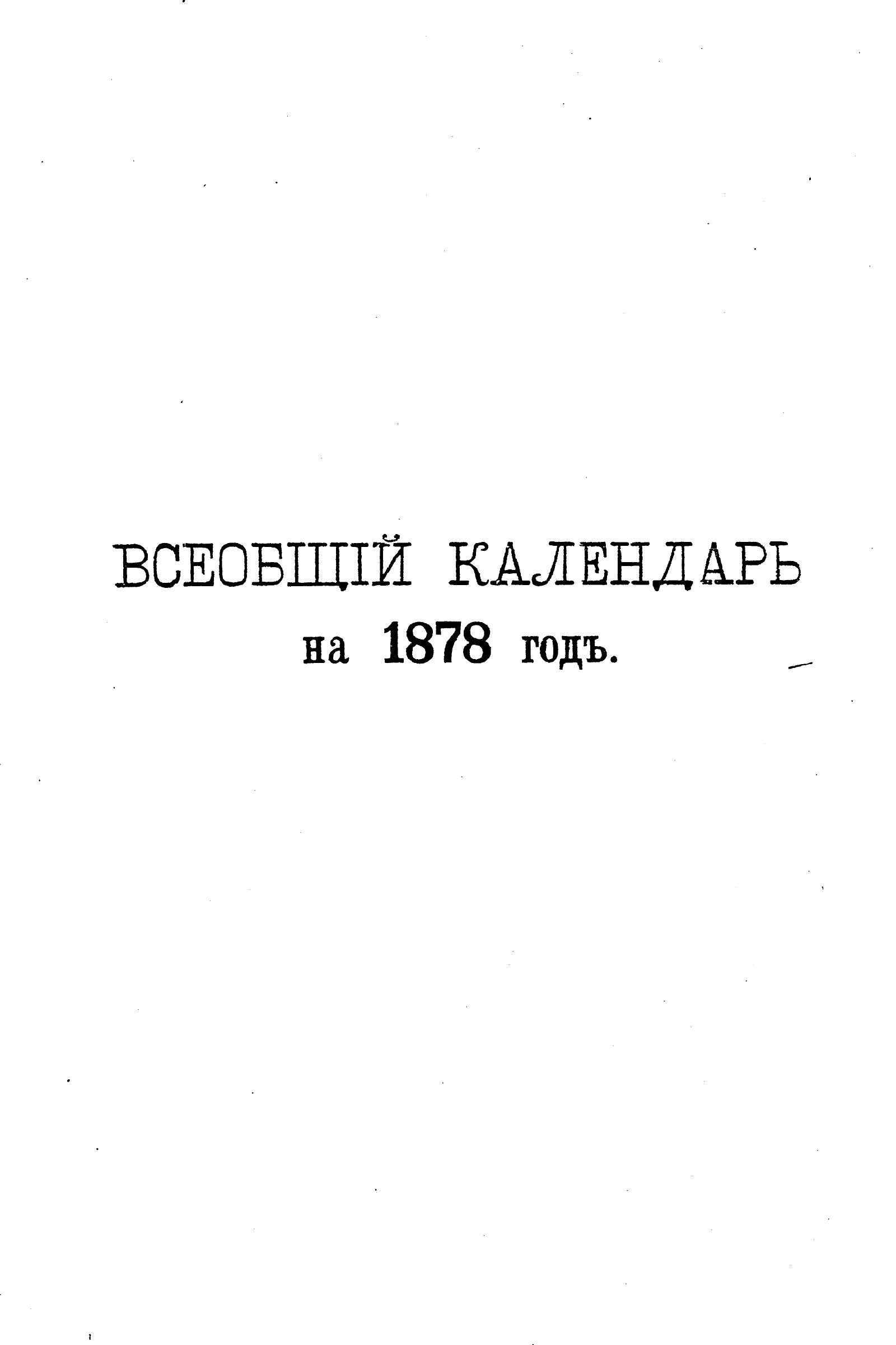 Всеобщий календарь на 1878 г. с прил.: 14 портр. главн. русск. деятелей росс.-турецкой войны; 14 портр. главн. турецких деятелей, с картою театра войны в Европ. Турции