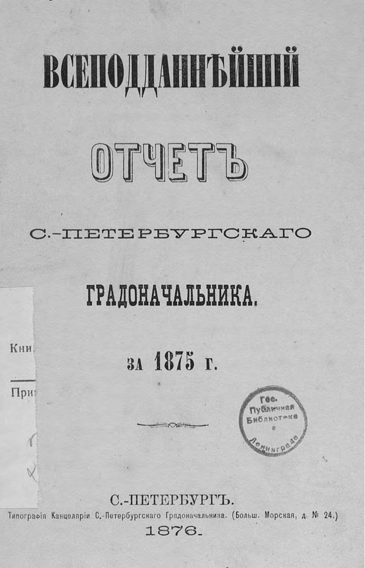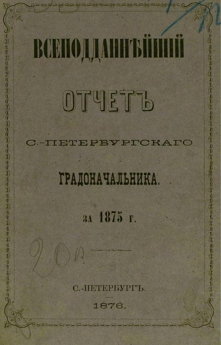 Всеподданнейший отчет С.-Петербургского градоначальника за 1875 г.