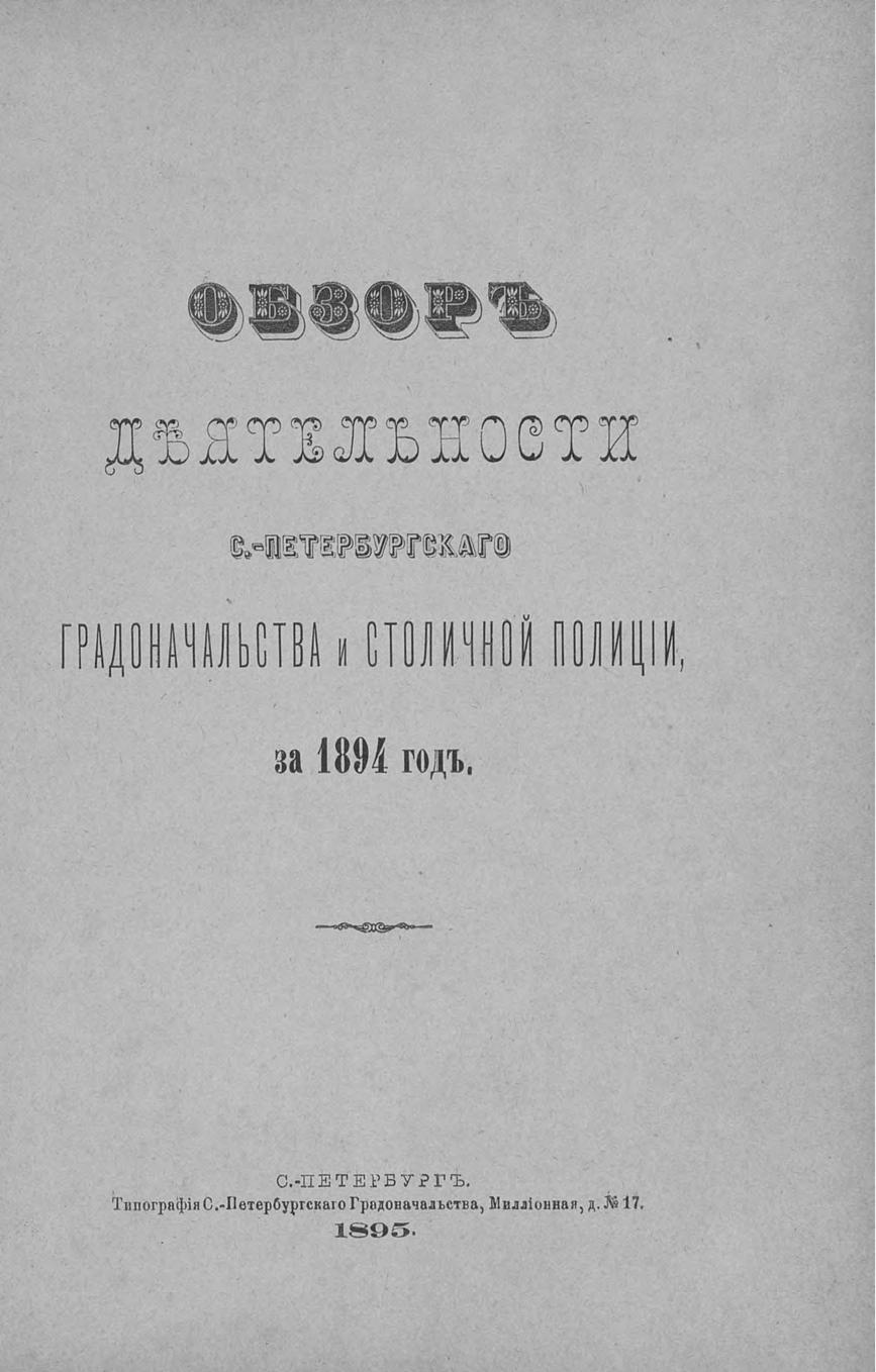 Всеподданнейший отчет С.-Петербургского градоначальника за 1894 г.