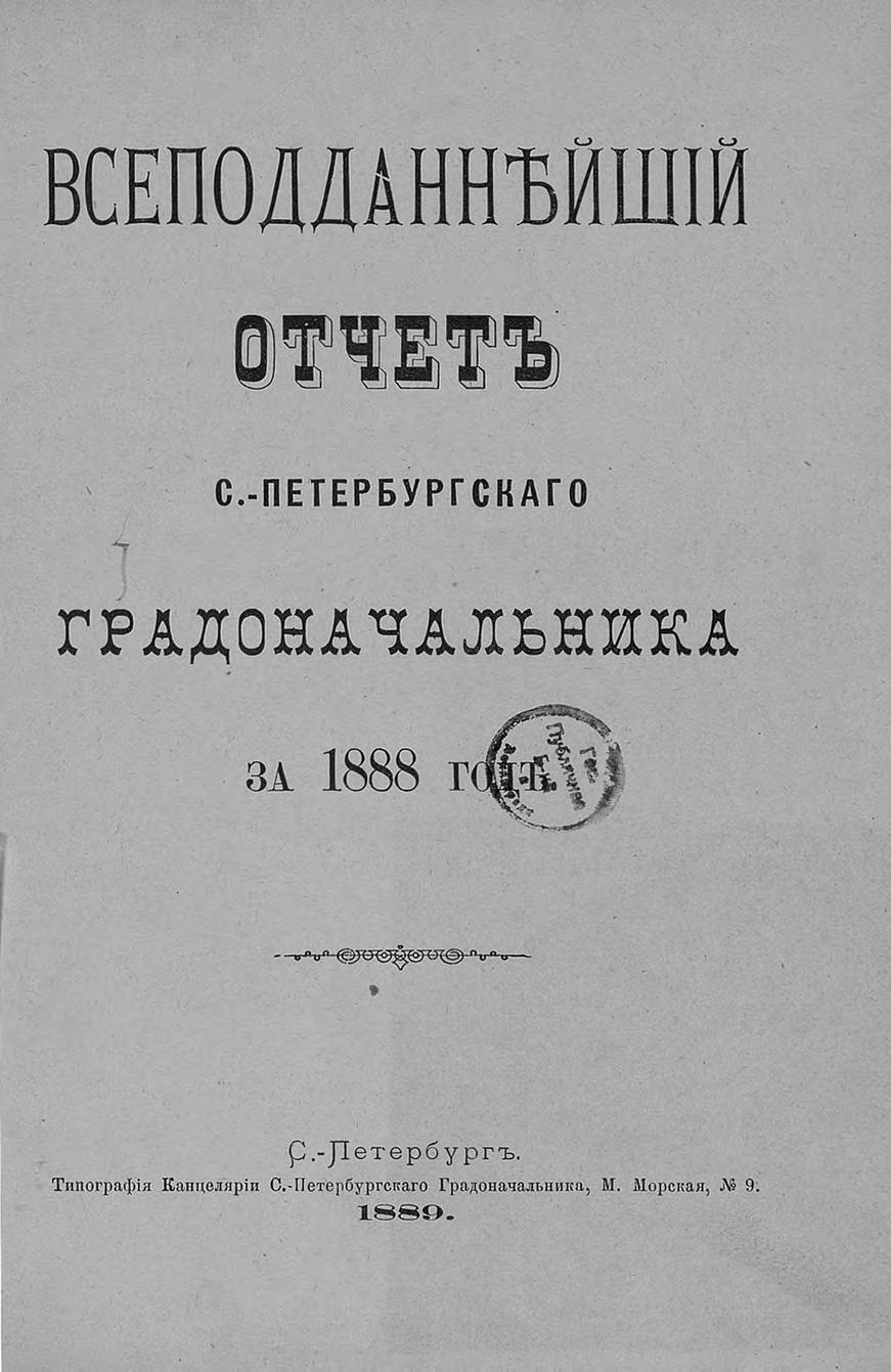 Всеподданнейший отчет С.-Петербургского градоначальника за 1888 г.