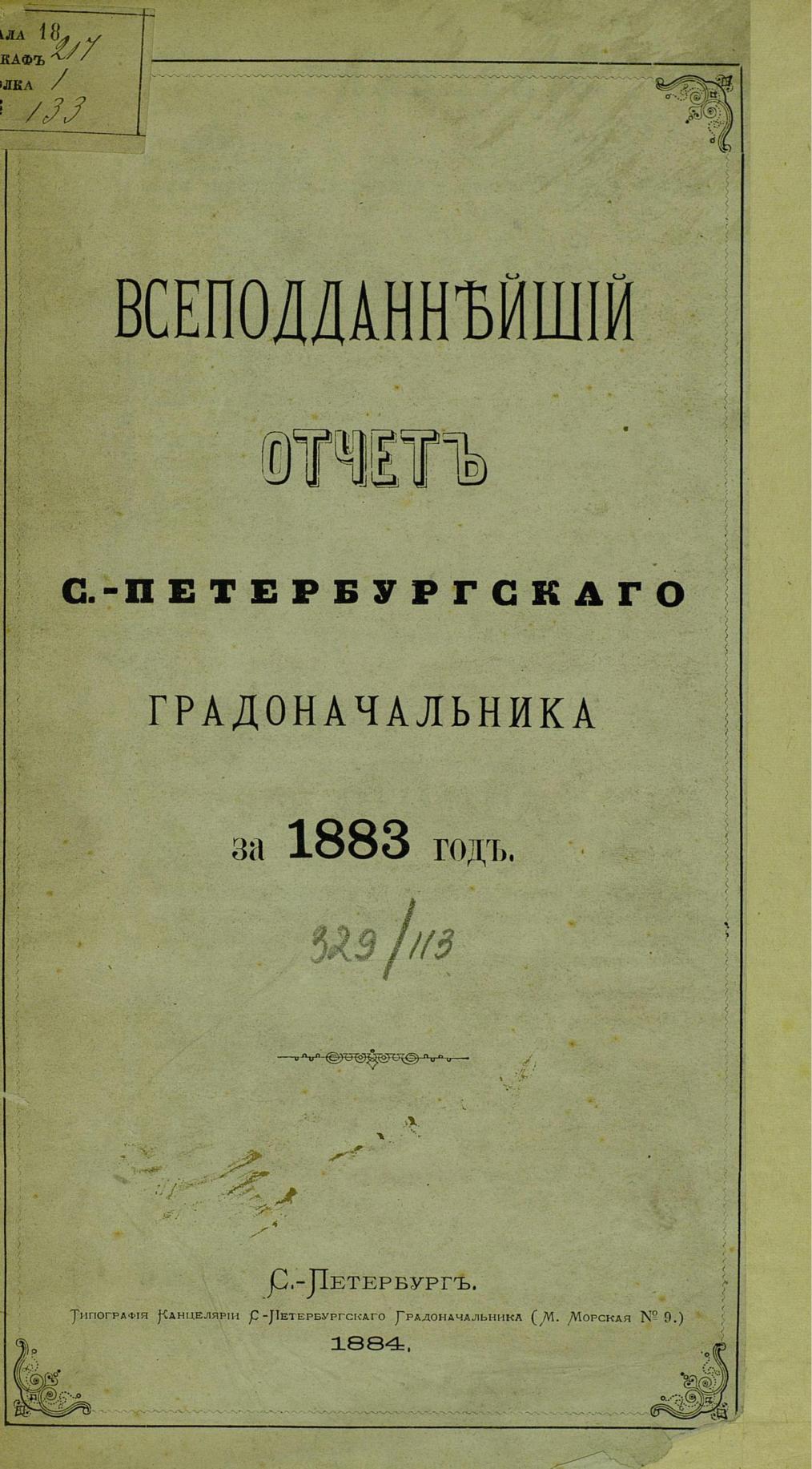 Всеподданнейший отчет С.-Петербургского градоначальника за 1883 г.