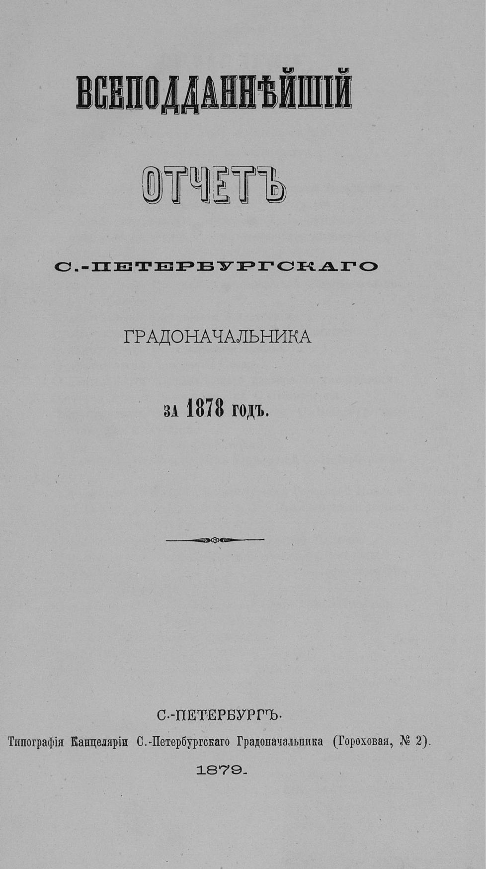 Всеподданнейший отчет С.-Петербургского градоначальника за 1878 г.