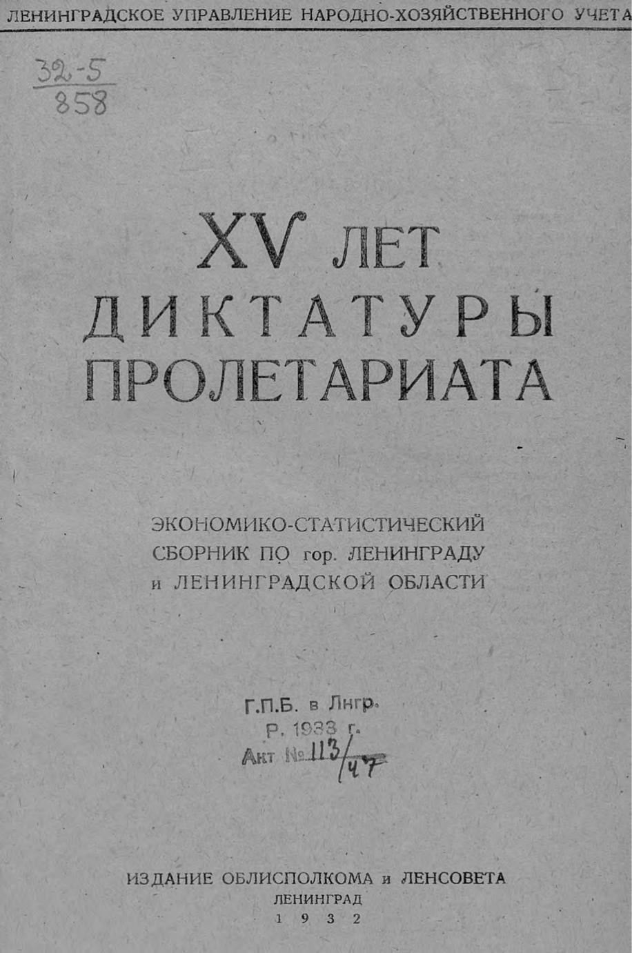 XV лет диктатуры пролетариата: Экономико-статист. сборник по г. Л-ду и Ленингр.