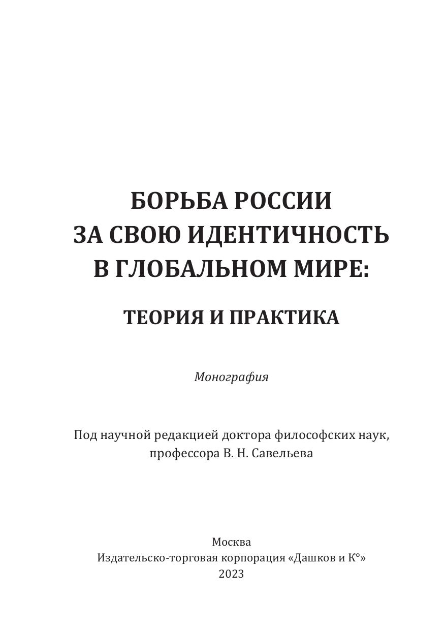 Борьба России за свою идентичность в глобальном мире: теория и практика