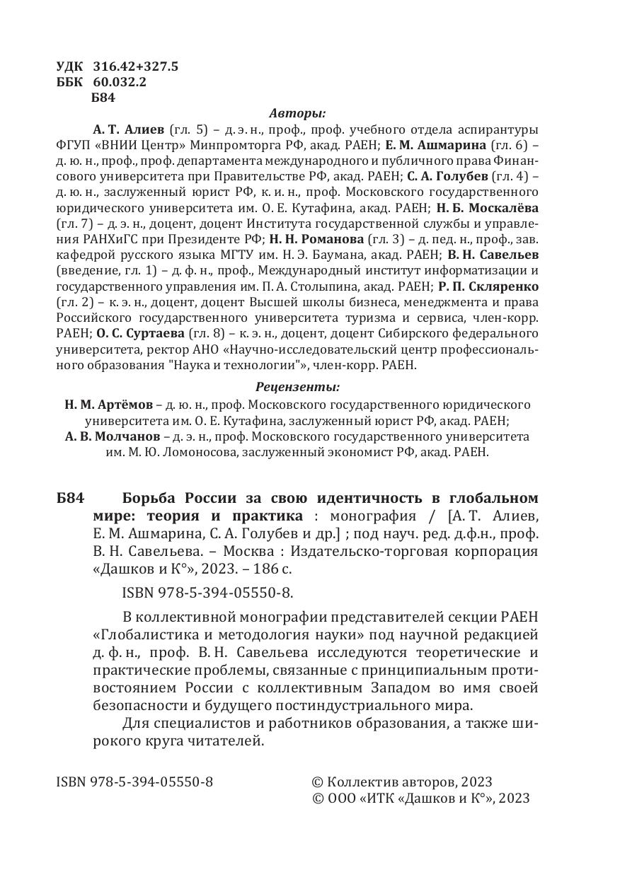 В коллективной монографии представителей секции РА-ЕН «Глобалистика и методология науки» под научной редакцией д. ф. н., проф. В. Н. Савельева исследуются теоретические и практические проблемы, связанные с принципиальным противостоянием России с коллективным Западом во имя своей безопасности и будущего постиндустриального мира.