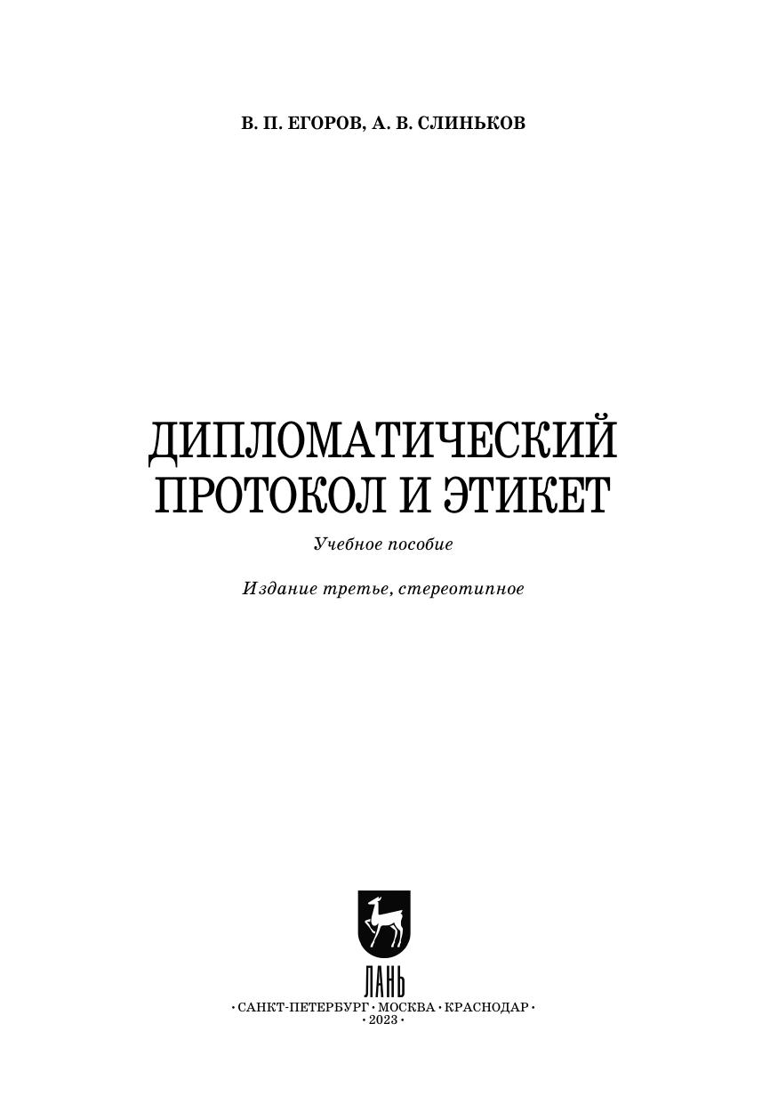 В учебном пособии приведены основные нормативные материалы, регули-рующие дипломатическую деятельность, порядок и процедуру вступления в долж-ность дипломатических представителей, протокольную практику ведения пере-говоров и организации основных мероприятий. В пособии показаны характерные особенности современного дипломатического языка и основные правила ведения дипломатической переписки, изложены тонкости дипломатического и светского этикета. Книга рекомендуется к использованию в высших учебных заведениях реа-лизующих рабочие программы по дисциплине «Дипломатический протокол и этикет» для направления подготовки «Документоведение и архивоведение» и профиля (специализации) «Документационное обеспечение управления в условиях цифровой экономики», а также для профиля «Менеджмент организации» на-правления подготовки «Менеджмент» и для различных профилей направления подготовки «Управление персоналом». Учебное пособие будет интересно руко-водителям и специалистам сферы управления и производства, ведущих внешне-экономическую деятельность, заинтересованным в повышении результативности за счёт лучшего использования «человеческого фактора».