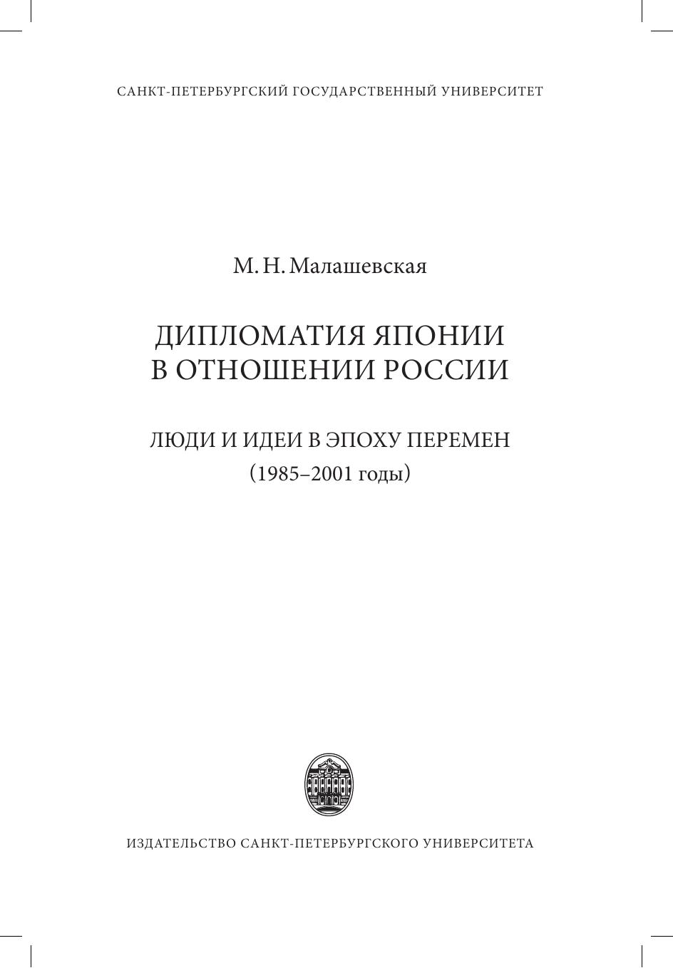 Дипломатия Японии в отношении России: люди и идеи в эпоху перемен (1985-2001 годы)