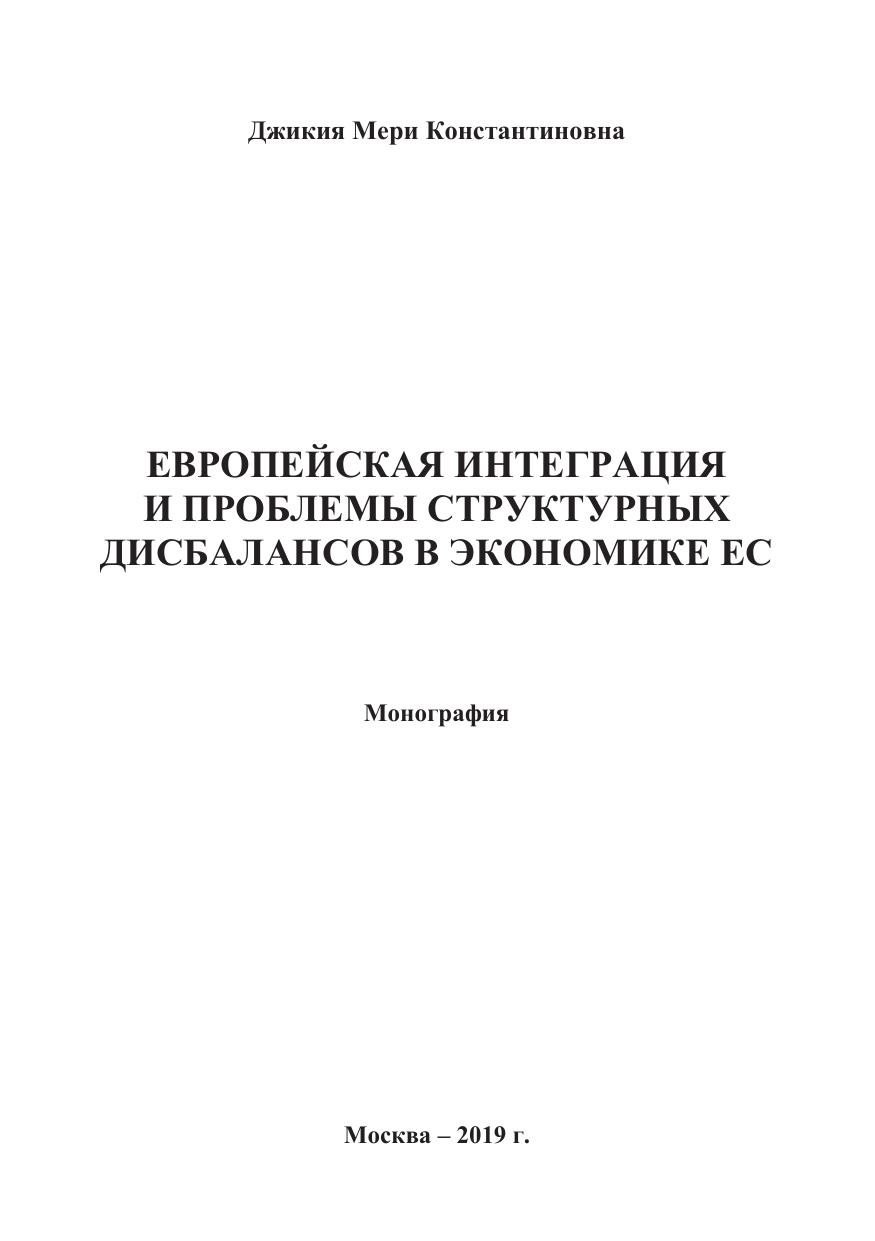 Европейская интеграция и проблемы структурных дисбалансов в экономике ЕС