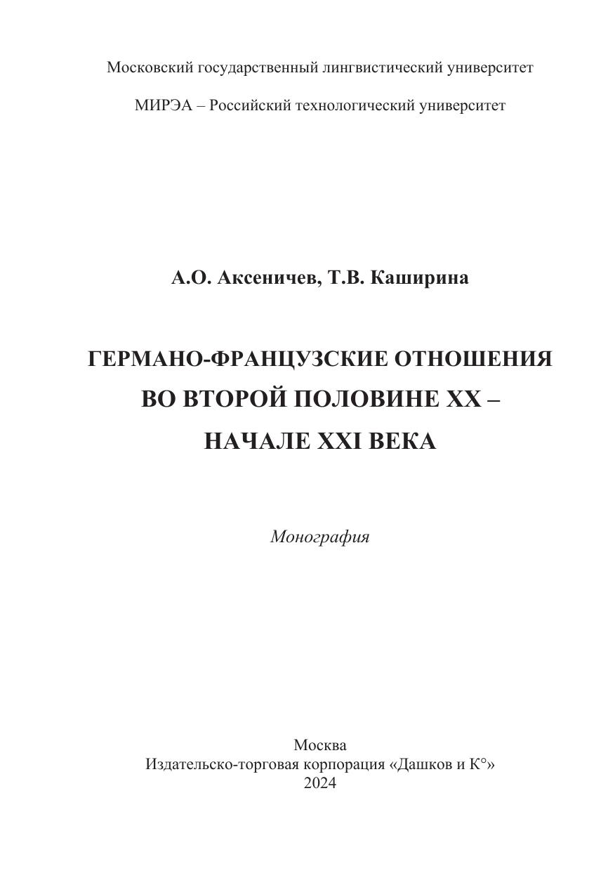 Германо-французские отношения во второй половине XX-начале XXI века