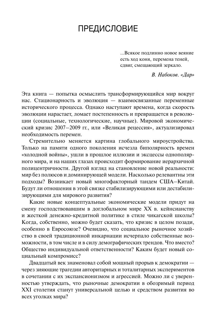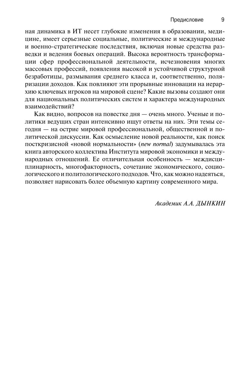 Что такое посткризисная «новая нормальность» (new normal)? Авторский коллектив Института мировой экономики и международных отношений (ИМЭМО РАН) попытался ответить на этот вопрос, осмыслив новую реальность в разных плоскостях: в экономической, социальной и политической. Авторы проанализировали поиски новой модели роста экономики и новые подходы в регулировании финансовых рынков, особенности инновационной политики и развитие нефтегазового сектора, новую корпоративную карту миру, где особое место отвоевывают государственные компании. В тесной взаимосвязи с экономикой меняется социальная сфера: государственная политика находится в поиске ответов на новые вызовы социальных дисбалансов и миграционной политики; государственная политика перестраивается под давлением требований, предъявляемых человеком XXI века к демократии. Эти проблемы свойственны всем странам, однако особое значение они имеют для «новой периферии» – посткоммунистических стран. Существенные изменения наблюдаются также в политической сфере: новые реалии формируются в системе международных отношений, которые проявляются в развитии трансатлантических отношений и отношений США и КНР. В посткризисный период меняется парадигма международной безопасности. Эту тенденцию авторы иллюстрируют на примерах урегулирования конфликтов в зоне АфПак и на Ближнем Востоке. Также кризис повлиял на развитие интеграции в ЕС. Монография предназначена не только для специалистов в области экономики, социологии или международных отношений, но и для широкого круга небезразличных читателей, интересующихся современными тенденциями мирового развития.
