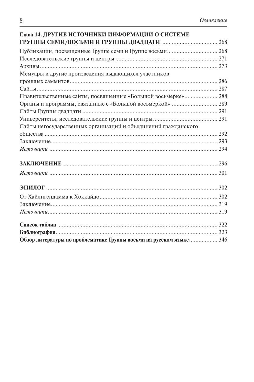 Освещены истоки, полномочия, структура саммита Группы восьми. Проанализирована роль Группы семи и Группы восьми в современной политической жизни. Рассмотрены условия членства России и других стран в этом институте. Представлен процесс разработки повестки дня саммитов. Раскрыты отношения Группы семи и Группы восьми с международными организациями и деловыми кругами. Приведена документация межправительственных форумов, рабочих и экспертных групп, а также другие источники информации о системе Группы семи/восьми и Группы двадцати. Для государственных и политических деятелей, участвующих в решении внешнеполитических проблем, дипломатов, специалистов-международников, сотрудников международных организаций. Представляет интерес для исследователей международных отношений и новейшей истории.