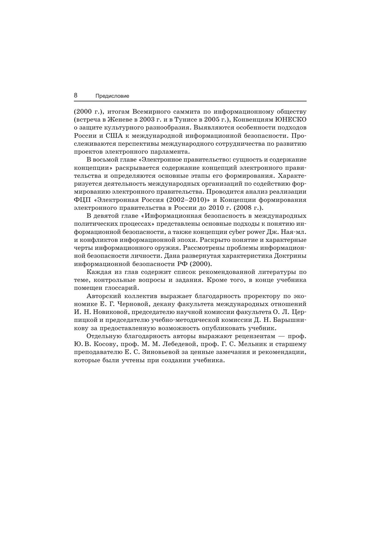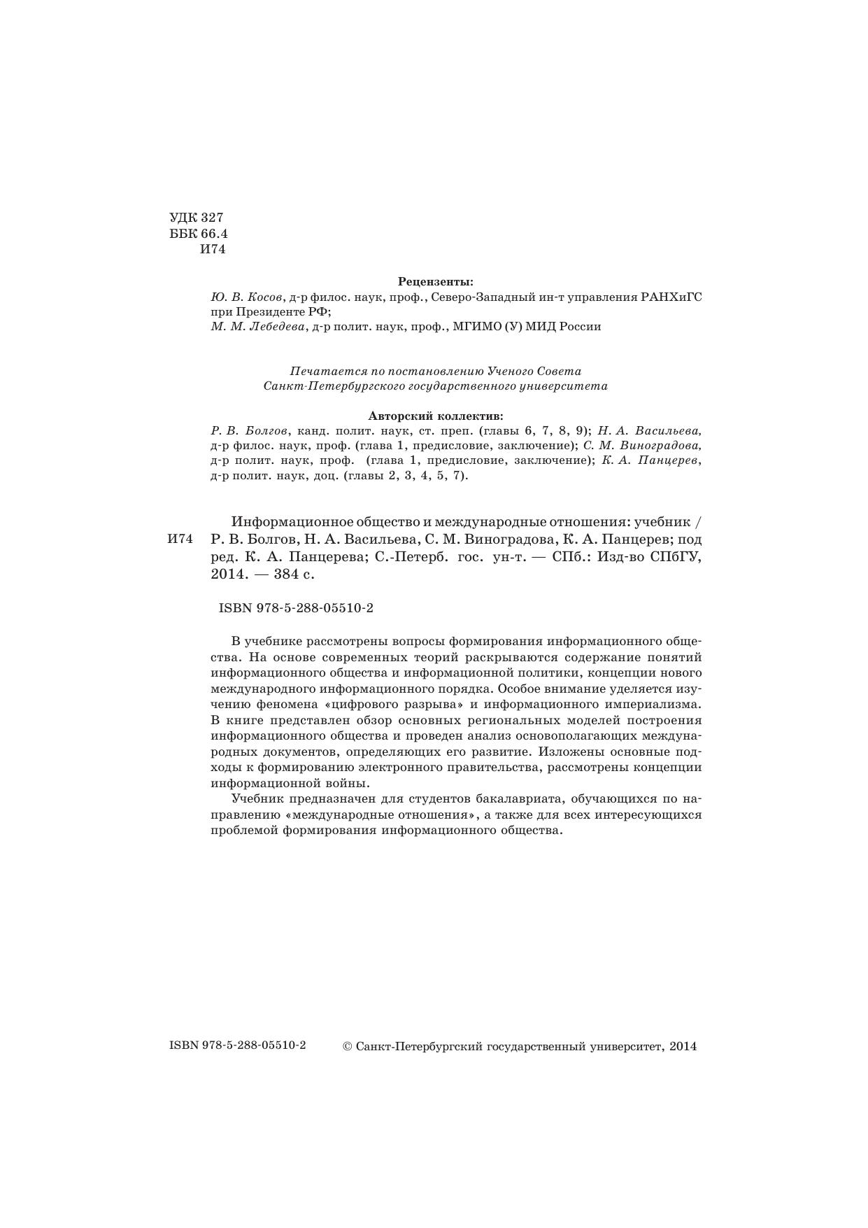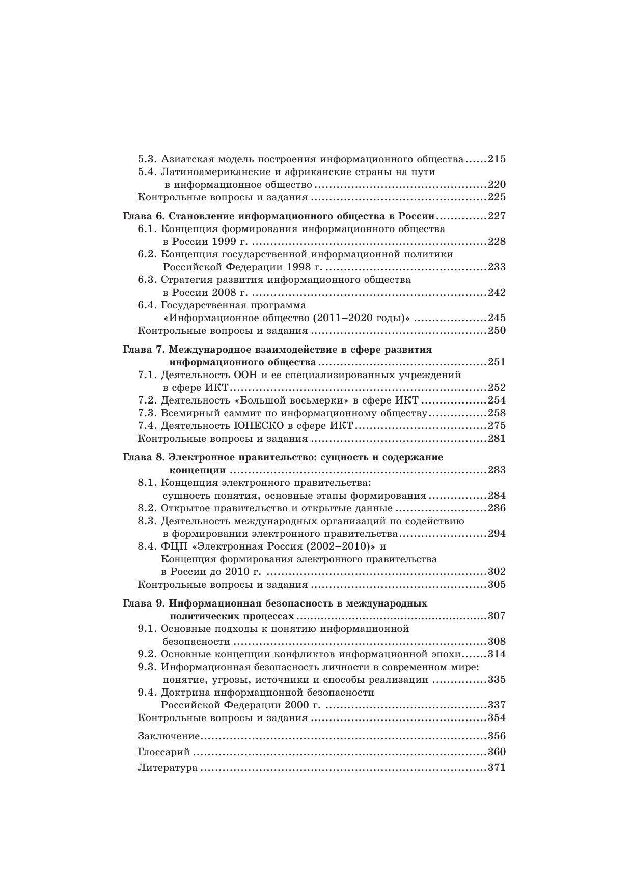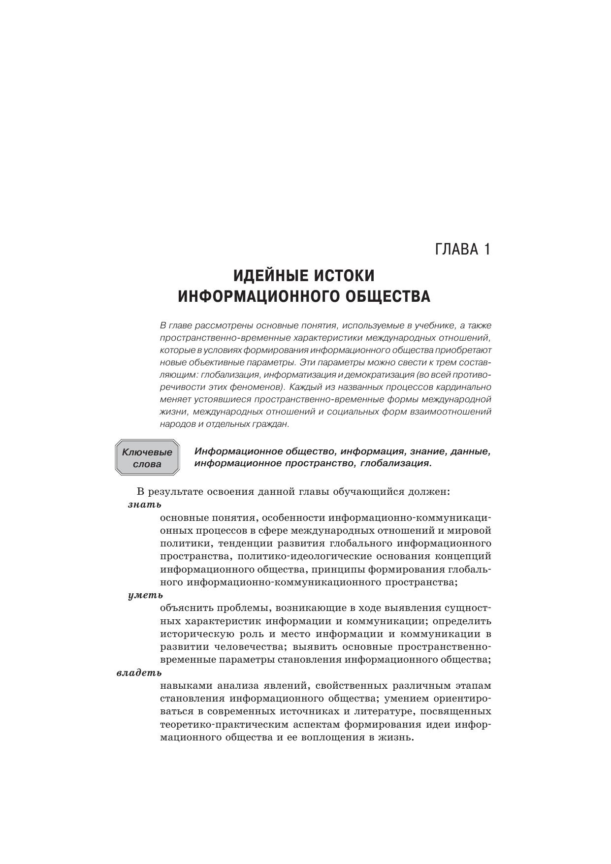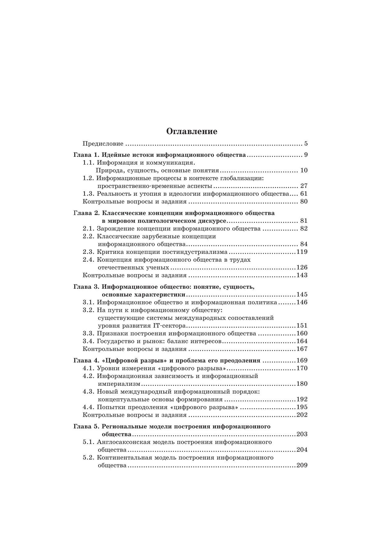 В учебнике рассмотрены вопросы формирования информационного общества. На основе современных теорий раскрываются содержание понятий информационного общества и информационной политики, концепции нового международного информационного порядка. Особое внимание уделяется изучению феномена «цифрового разрыва» и информационного империализма. В книге представлен обзор основных региональных моделей построения информационного общества и проведен анализ основополагающих международных документов, определяющих его развитие. Изложены основные подходы к формированию электронного правительства, рассмотрены концепции информационной войны.