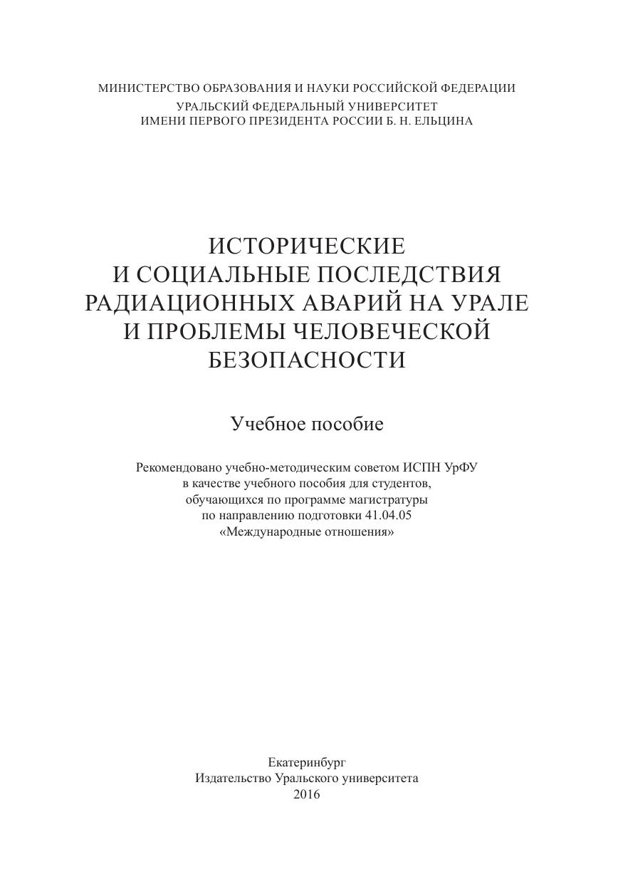 Исторические и социальные последствия радиационных аварий на Урале и проблемы человеческой безопасности: учеб. пособие