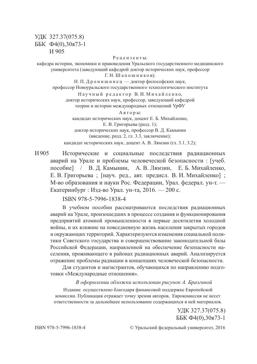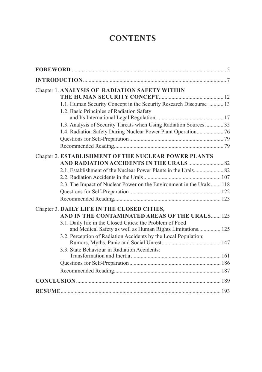 В учебном пособии рассматриваются последствия радиационных аварий на Урале, произошедших в процессе создания и функционирования предприятий атомной промышленности в первые десятилетия холодной войны, и их влияние на повседневную жизнь населения закрытых городов и окружающих территорий. Характеризуются изменения социальной политики Советского государства и совершенствование законодательной базы Российской Федерации, направленной на обеспечение безопасности населения, проживающего в районах радиационных аварий. Анализируется отражение проблемы радиации в концепциях человеческой безопасности. Для студентов и магистрантов, обучающихся по направлению подготовки «Международные отношения».