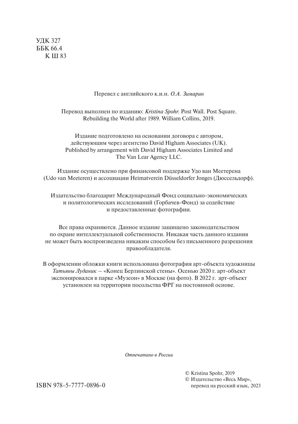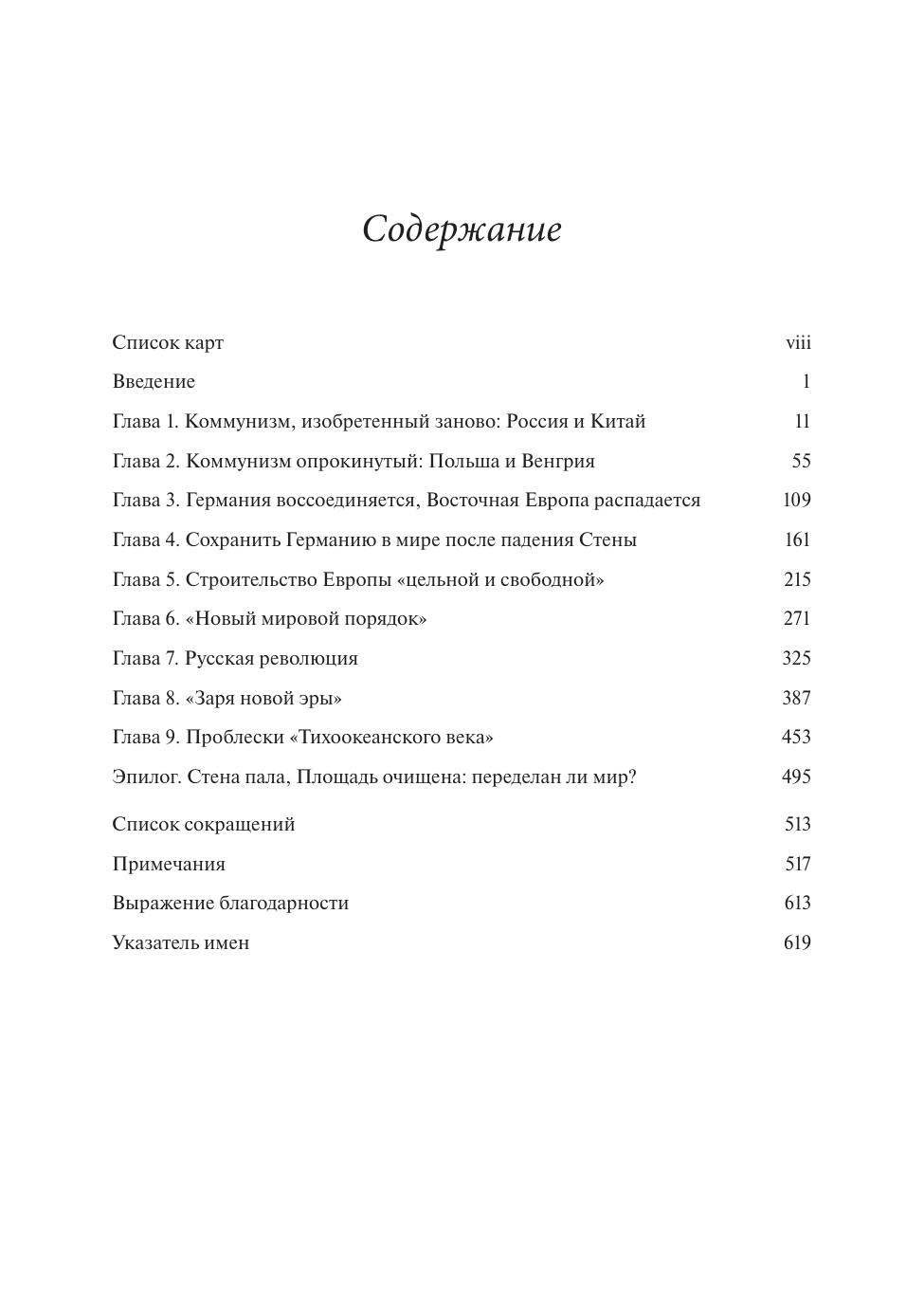 Книга известного специалиста в области истории международных отношений Кристины Шпор посвящена детальному воссозданию истории и обстоятельств, а также анализу причин и последствий колоссальных изменений в мире конца 80-х – начала 90-х гг. XX в., которые принято считать концом холодной войны. Осью внимания автора являются два противоположных по характеру символических события того времени – падение Берлинской стены и события на площади Тяньаньмэнь в Пекине. Все остальные перемены в отношениях между СССР и США, внутриполитические перемены в странах Восточной Европы и в самом СССР рассматриваются К. Шпор как реализация разных подходов к осуществлению реформ. Ценнейшей особенностью книги является огромная документальная база, на которую опирается автор в своей работе, а также беспристрастный научный подход к описанию и анализу событий. Оригинальное издание книги вышло в свет в 2019 г., но прошедшие с этого времени четыре года и значительные новые перемены в международной обстановке нисколько не умаляют, а наоборот, повышают значение и ценность исследования. Книга К. Шпор представляет несомненный интерес не только для специалистов в области международных отношений, но буквально для всех читателей, стремящихся глубоко понять истоки и причины современного кризиса глобального мирового порядка.