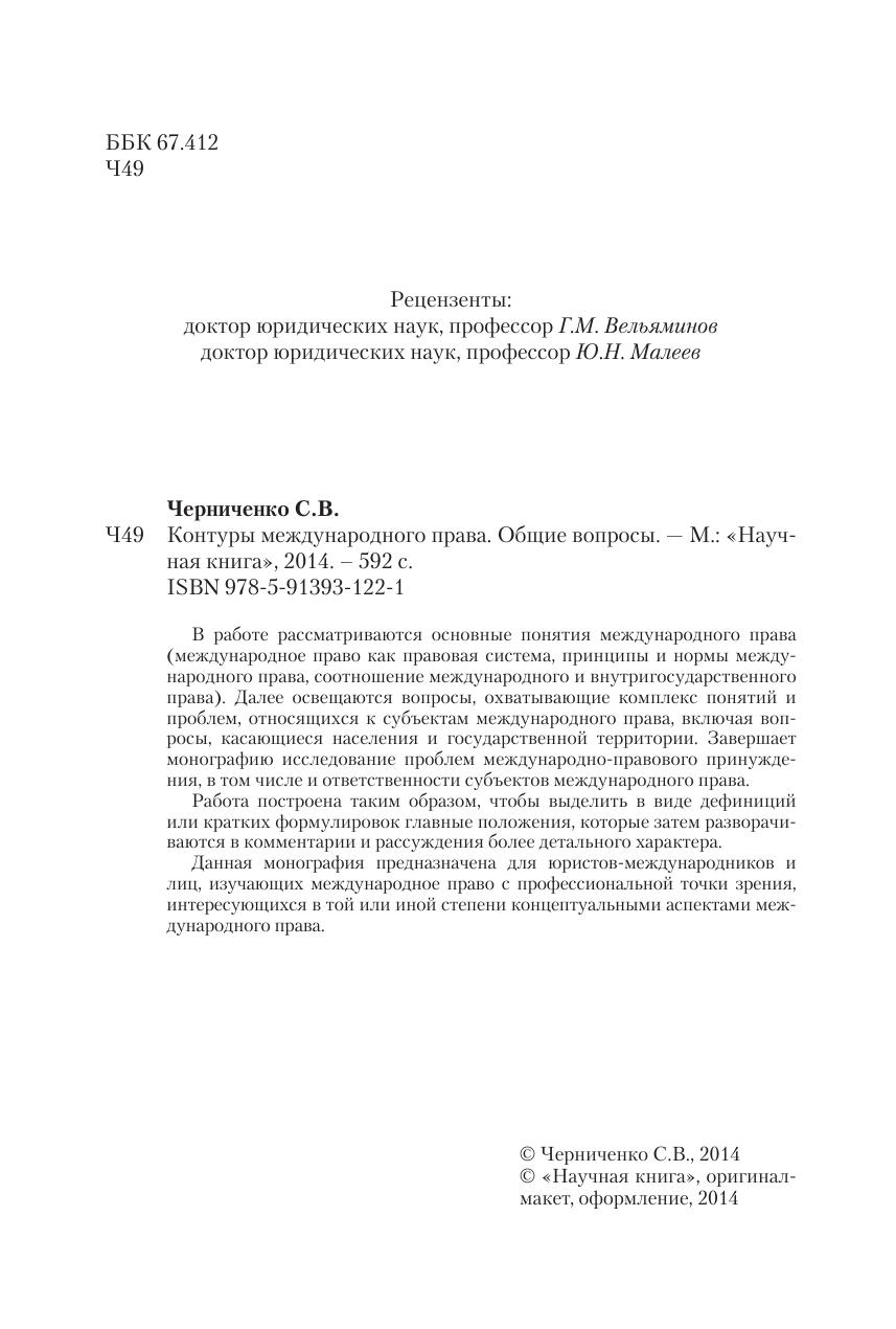 В работе рассматриваются основные понятия международного права (международное право как правовая система, принципы и нормы международного права, соотношение международного и внутригосударственного права). Далее освещаются вопросы, охватывающие комплекс понятий и проблем, относящихся к субъектам международного права, включая вопросы, касающиеся населения и государственной территории. Завершает монографию исследование проблем международно-правового принуждения, в том числе и ответственности субъектов международного права. Работа построена таким образом, чтобы выделить в виде дефиниций или кратких формулировок главные положения, которые затем разворачиваются в комментарии и рассуждения более детального характера. Данная монография предназначена для юристов-международников и лиц, изучающих международное право с профессиональной точки зрения, интересующихся в той или иной степени концептуальными аспектами международного права.