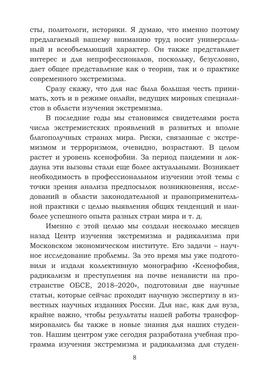 В сборнике представлены доклады Международной научной конференции, проведенной в режиме онлайн Московским экономическим институтом 26 октября 2021 года. В конференции приняли участие ведущие исследователи в области экстремизма и радикализма из 14 стран мира.
