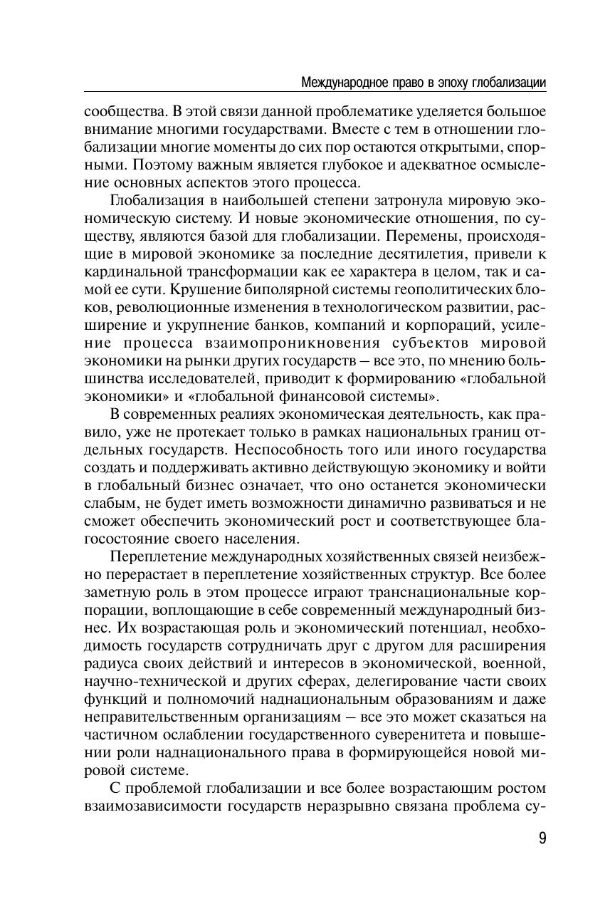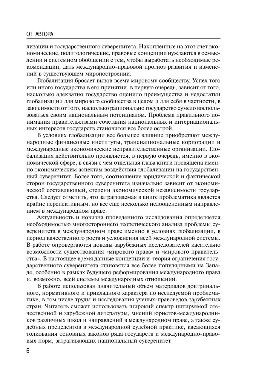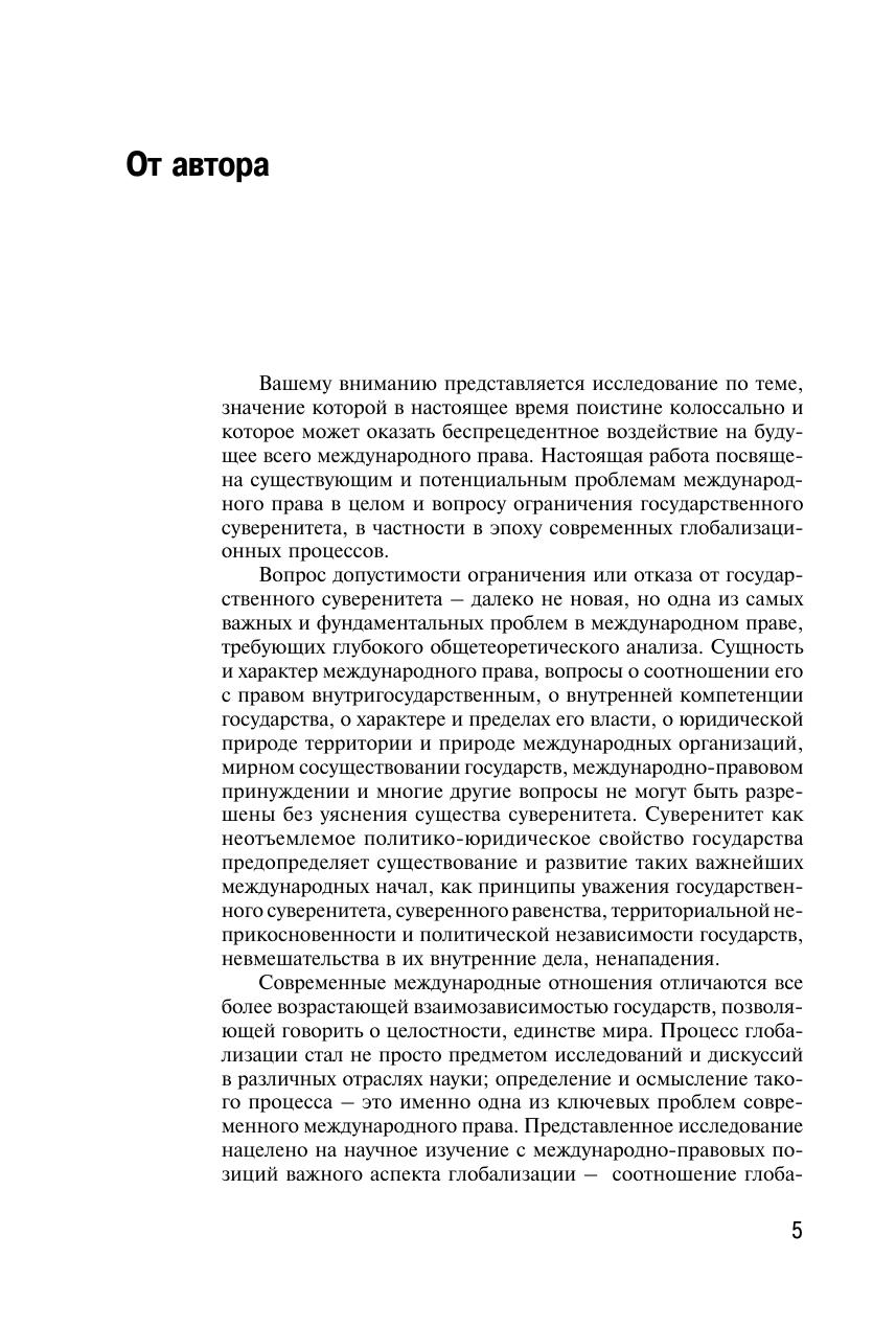 Книга А.В. Сеидова, кандидата юридических наук, написана на основе материалов проведенного им диссертационного исследования, посвященного актуальным проблемам международного права в эпоху глобализации, в том числе одной из наименее исследованных проблем в отечественной науке международного права – соотношению глобализации и государственного суверенитета. Автор предлагает оригинальное видение эволюции концепции государственного суверенитета в рамках развития современных глобализационных процессов с позиции международного права, с учетом разностороннего подхода к вопросу ограничения суверенитета государства, используемого в отечественных и зарубежных школах права. Книга предназначена для юристов, в особенности юристов-международников, дипломатов, политиков, специалистов по глобалистике и проблемам глобализации, преподавателей, аспирантов и студентов высших учебных заведений по направлениям юриспруденция, политология и международные отношения, а также для широкого круга читателей.