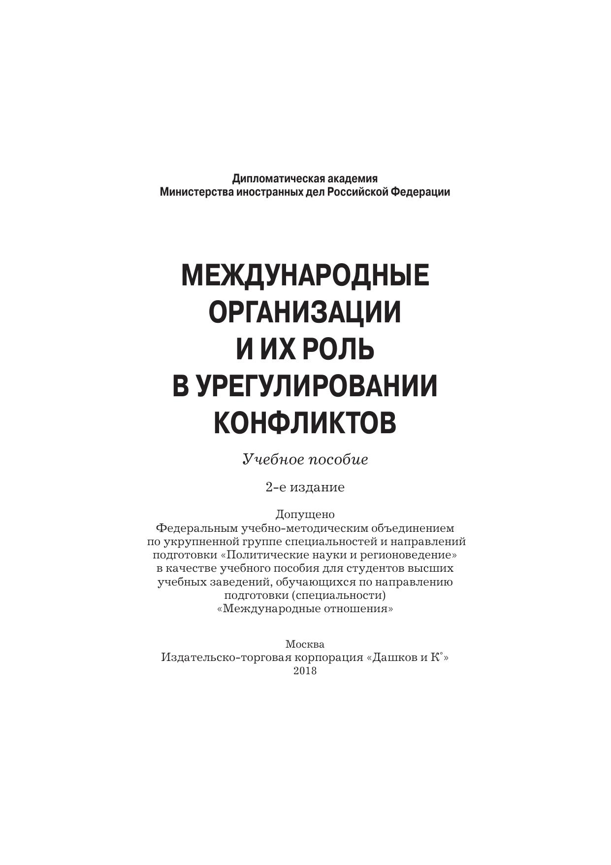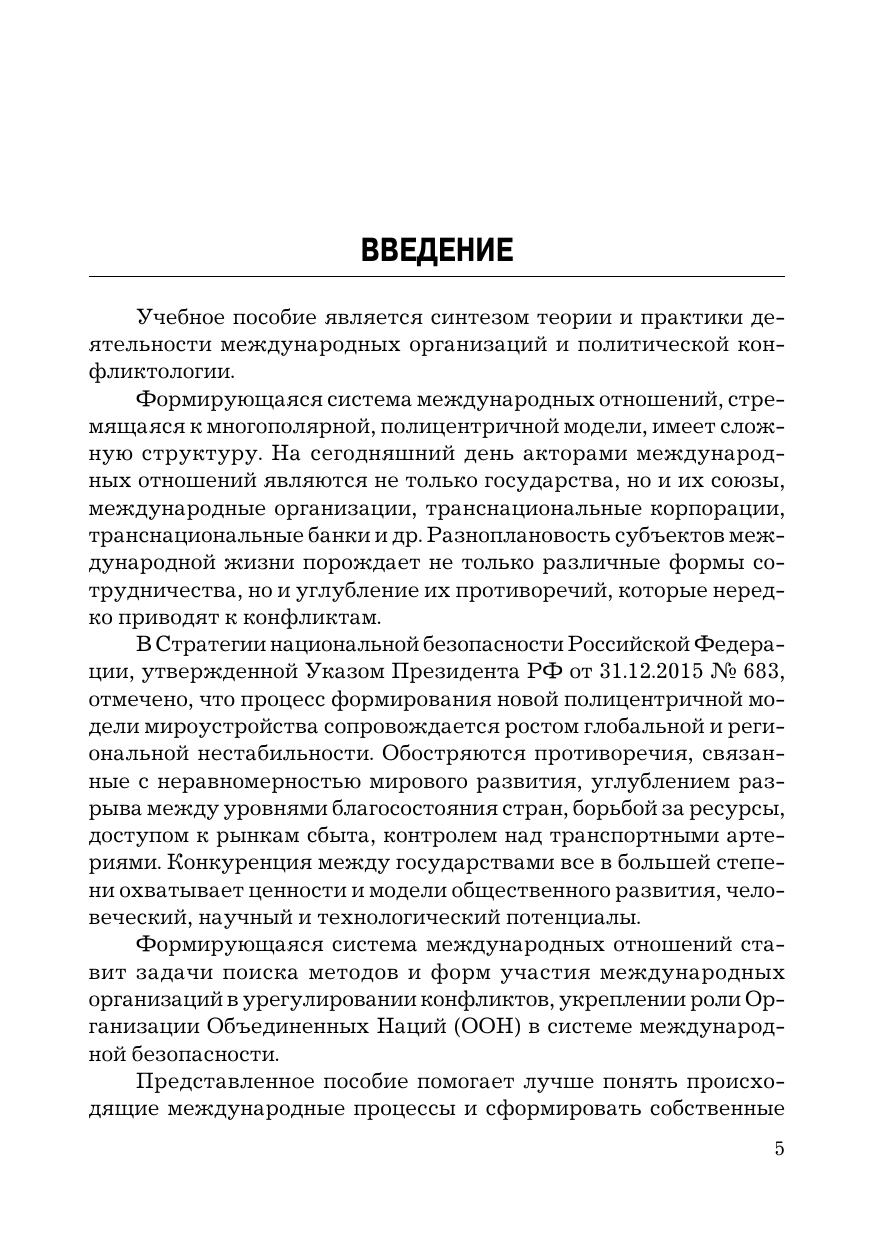 В учебном пособии даны концептуальные подходы к определению, классификации и роли международных организаций и международных конфликтов. Рассмотрены основные параметры функционирования международных организаций в регионах мира и их роль в урегулировании конфликтов. Для студентов бакалавриата и магистратуры, обучающихся по направлению подготовки «Международные отношения». Может быть также использовано при изучении учебных дисциплин «Международные организации», «Международные конфликты», «Политическая конфликтология» и др.